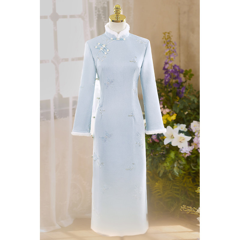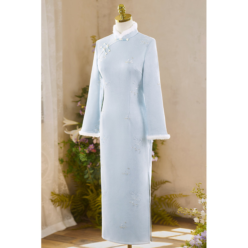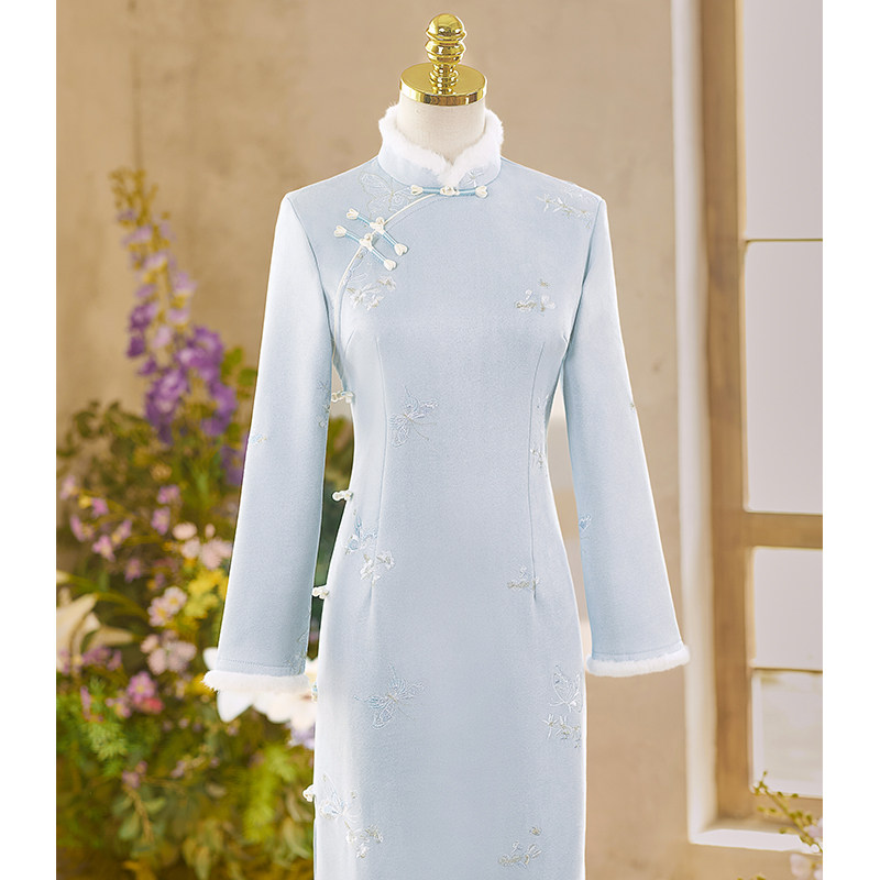 #过冬旗袍 #新中式 #绣花 #加绒长款 #日常穿搭 #清新裙 #券后价198
