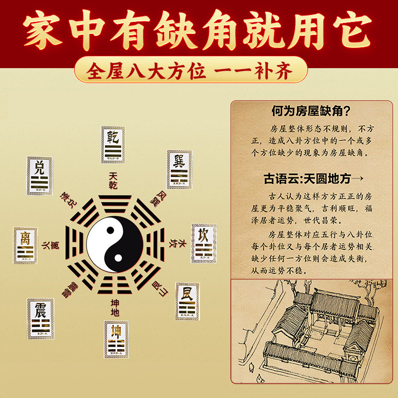 📚 铜八卦补角牌房屋缺角西北角补角牌震巽离坤兑坎艮乾卦铜牌纯挂件