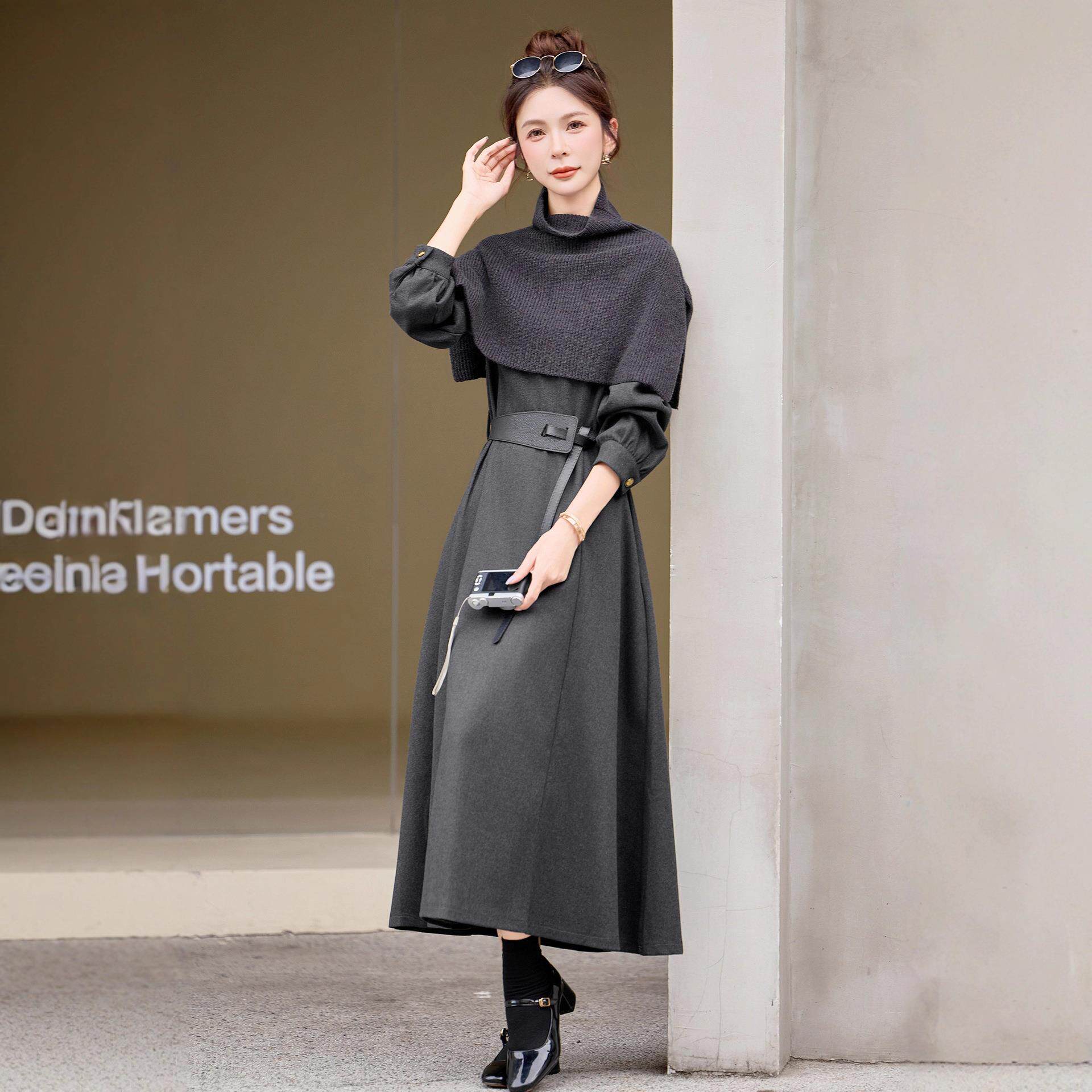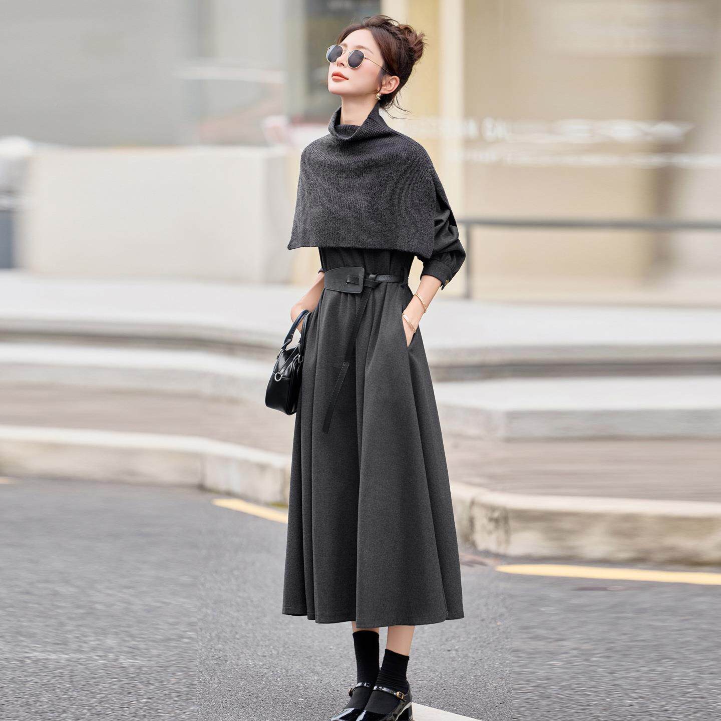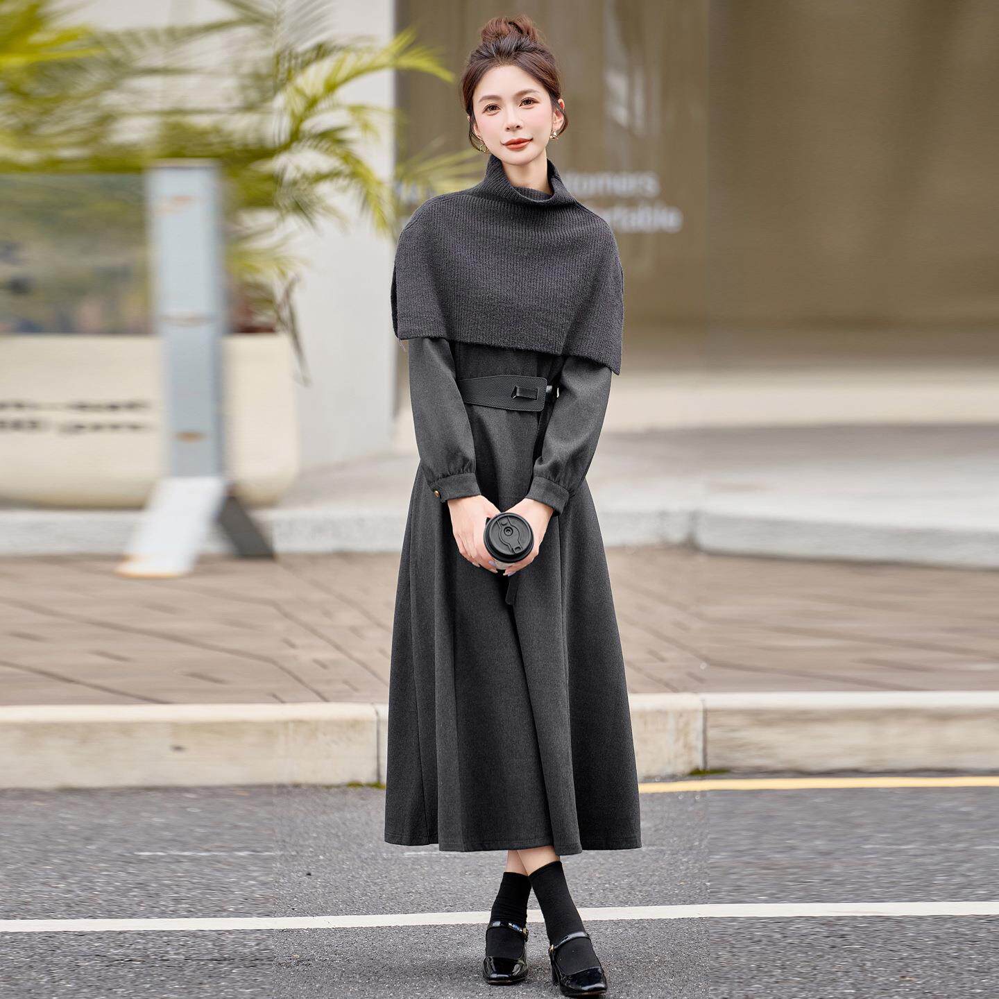 📚 确定新款YF2630-0女针织披肩遮肉套子长款裙装时尚两件连衣裙
