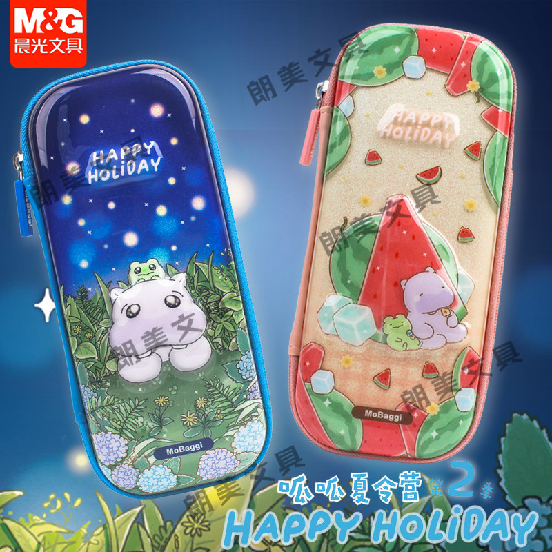 📚 晨光呱呱夏令营2 大容量EVA笔盒 卡通中小学生少女图案半透明晶闪外壳装铅笔硬壳PU底防水笔袋BD0245文具