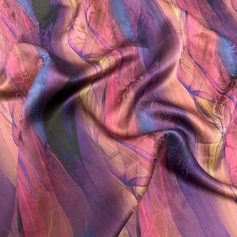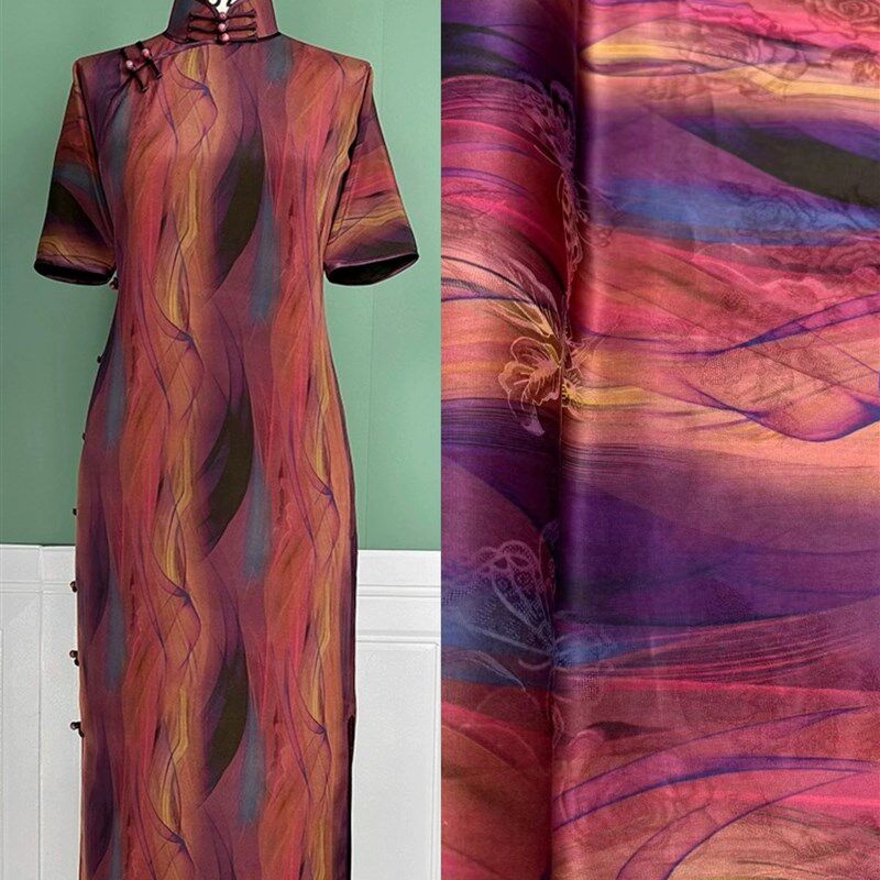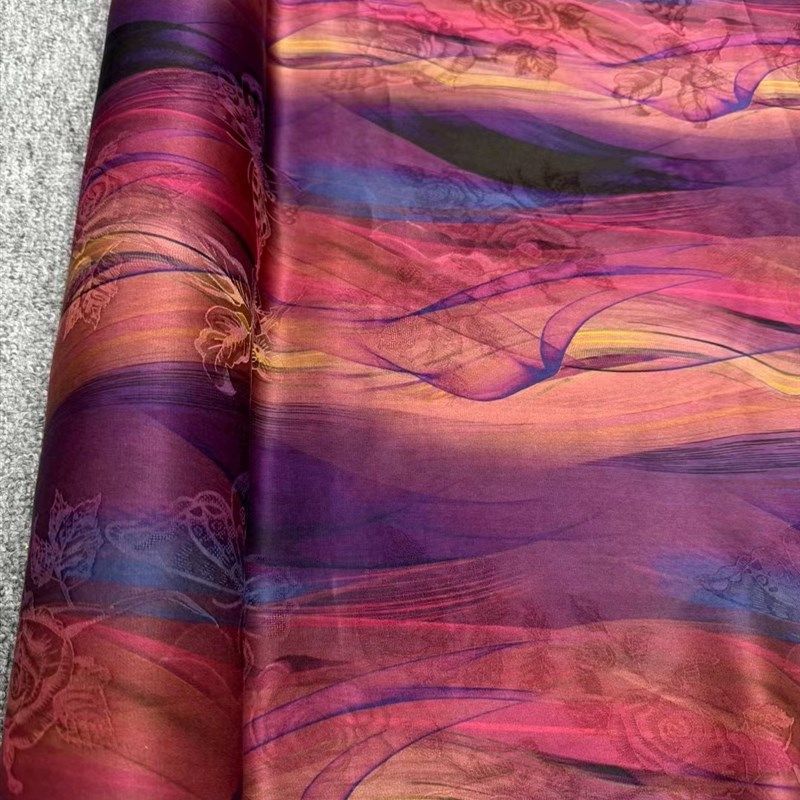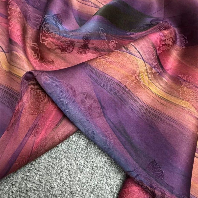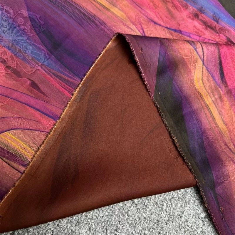 📚 月下微凉梦幻琉璃25姆米透孔花萝红云纱真丝面料 旗袍连衣裙布料