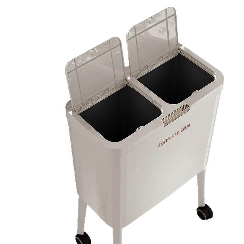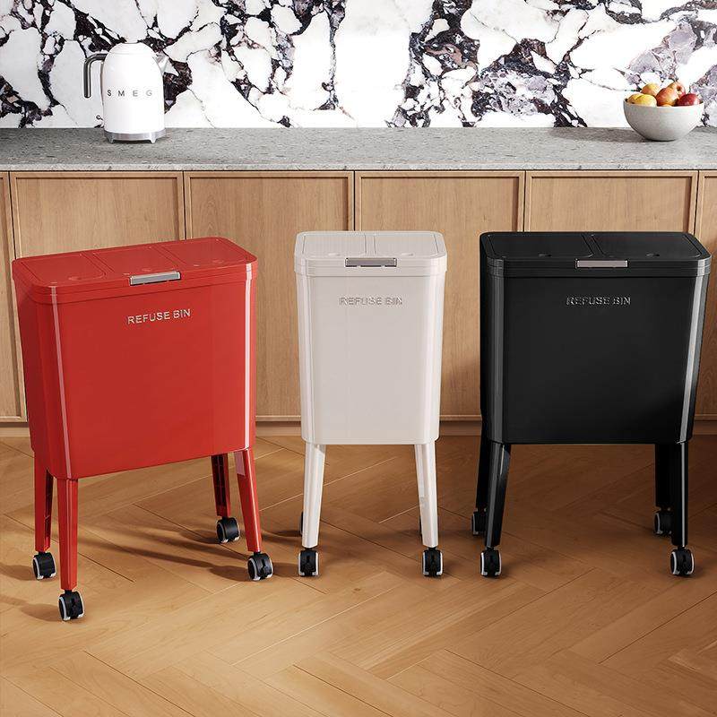 📚 垃圾桶厨房缝隙支脚带盖轮收纳桶干湿分离按类弹分清洁压卫003生