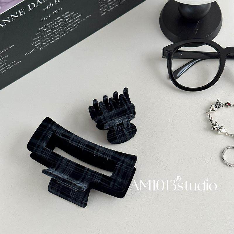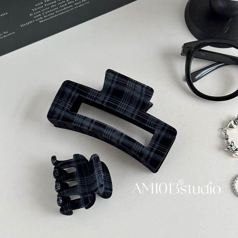 📚 AM1013格雷系方形格纹头发抓夹秋冬鲨鱼夹大号发夹女后脑勺发量多