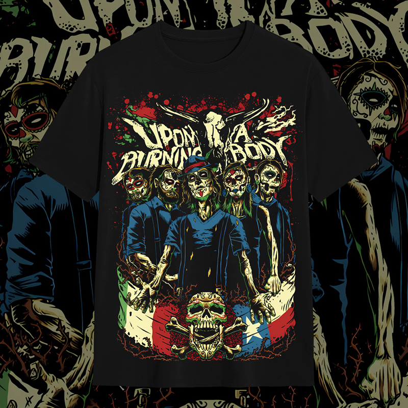 📚 Upon A Burning Body燃烧之躯乐队摇滚暗黑风骷髅美式高街短袖T恤