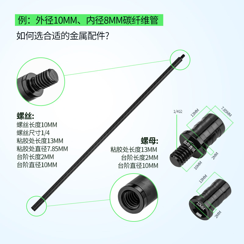 📚 碳纤维管用螺丝螺母1/4公母接头直径10mm户外露营灯杆DIY架子配件