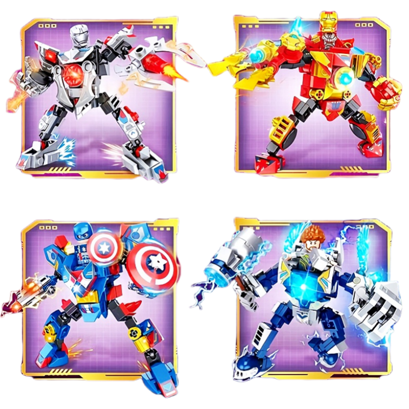 📚 复仇者4合1钢铁侠浩克机甲模型雷神美队战争机器联盟组装积木玩具