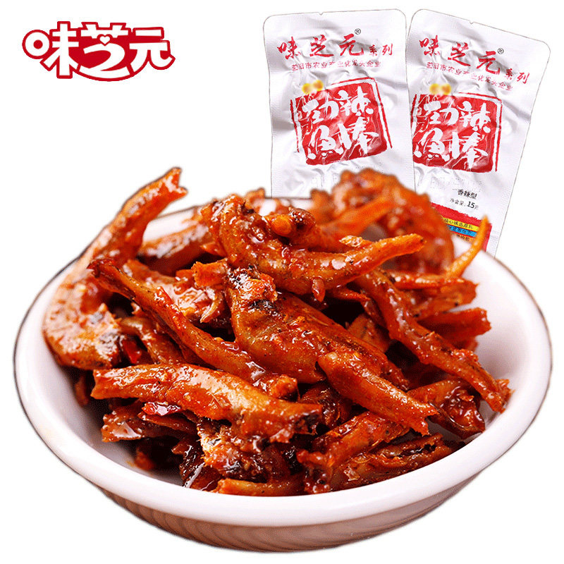 📚 味芝元劲辣鱼棒小鱼仔香辣味之源麻辣毛毛鱼小包装鱼干即食小零食