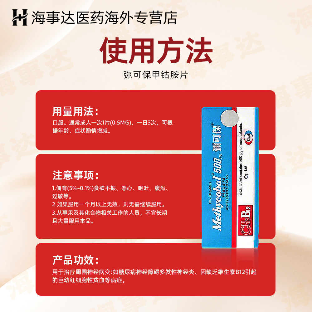 📚 Methycobal弥可保甲钴胺片神经痛手脚麻痹b12进口卫材100粒