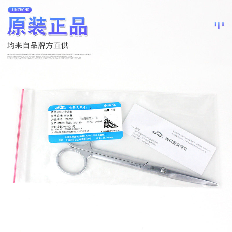 📚 上海金钟不锈钢组织剪医用手术剪刀直圆头弯圆14cm20cm组织解剖剪