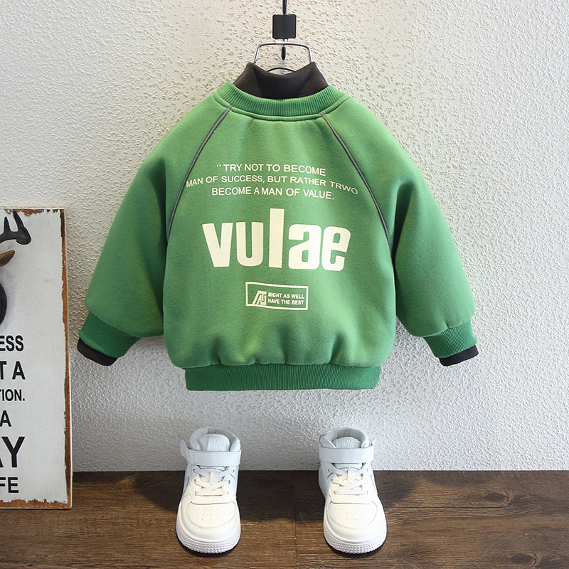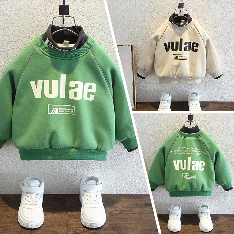 📚 儿童冬季男童加绒加厚卫衣2025新款酷帅男孩秋冬高领上衣宝宝冬装