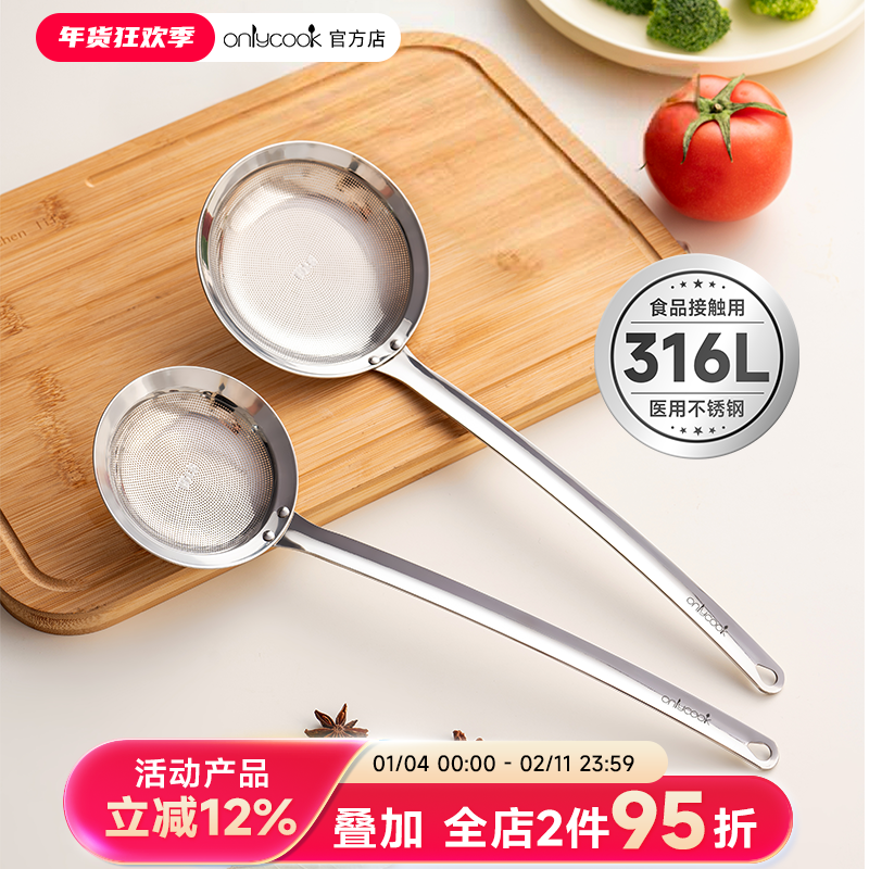 📚 onlycook撇浮沫勺316L不锈钢火锅滤油勺打沫去沫漏勺隔油汤勺捞勺