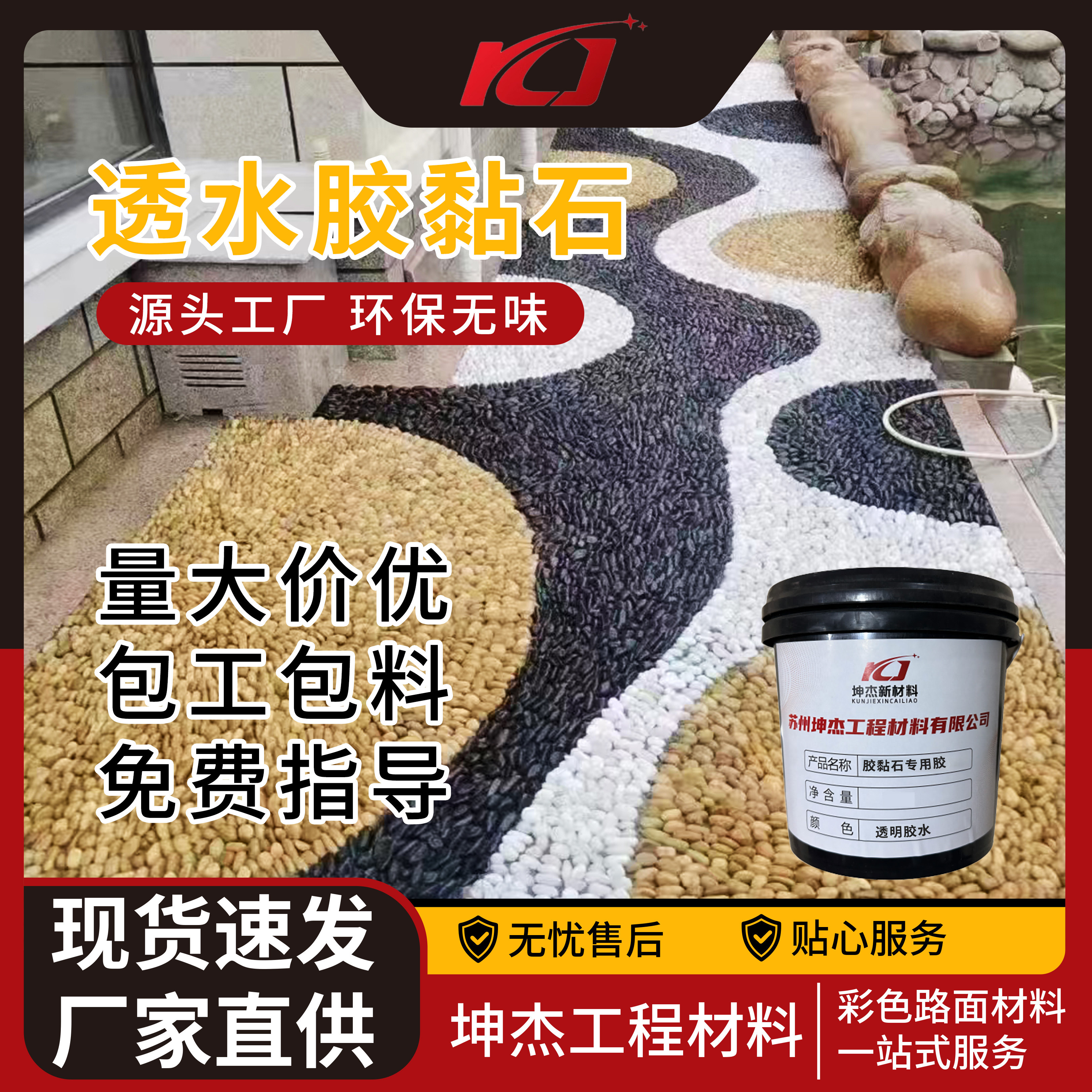 📚 石子铺面胶水地面粘胶石固化剂彩胶石透水石彩色地坪路面石子胶水