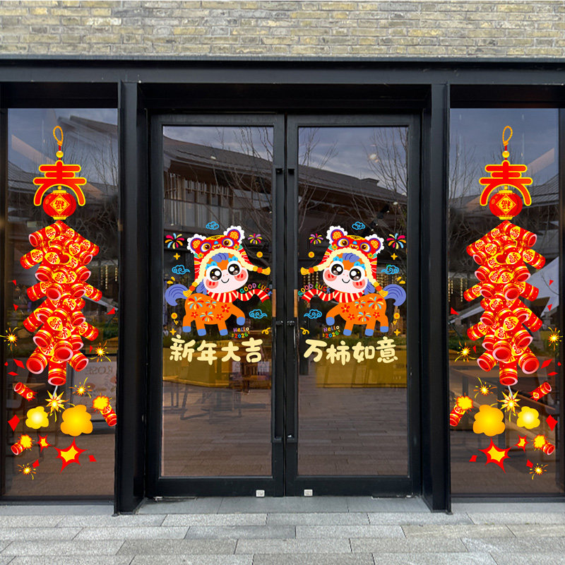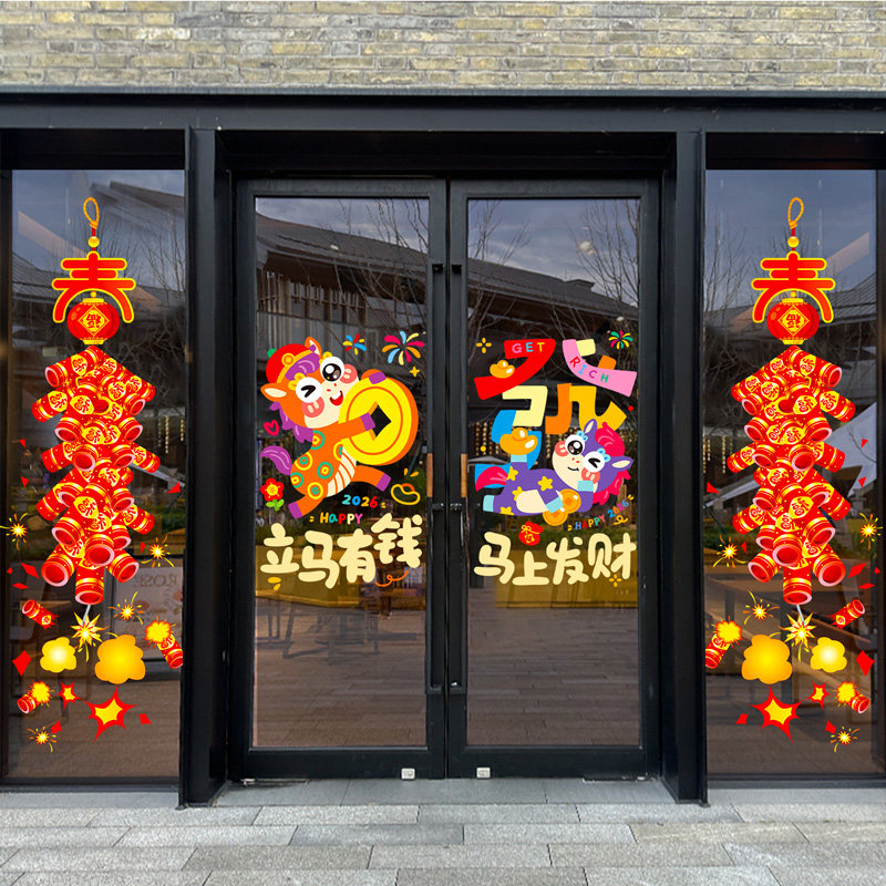 📚 春节氛围布置装饰静电玻璃窗花2026店铺新年新年过年橱窗活动门贴