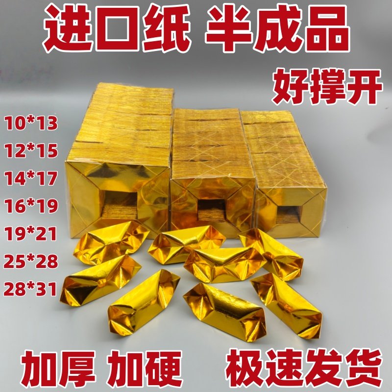 📚 进口金元宝半成品银元宝手工折纸金纸批发加厚切角半成品元宝清明