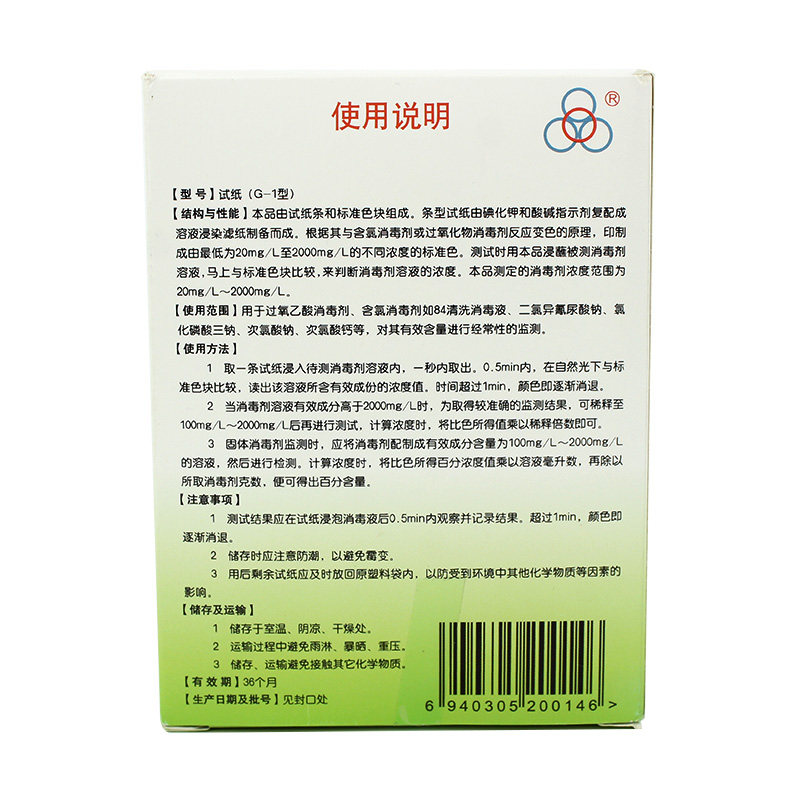 📚 四环G-1型消毒剂含氯消毒液浓度检测试纸测氯纸84消毒剂余氯卡纸