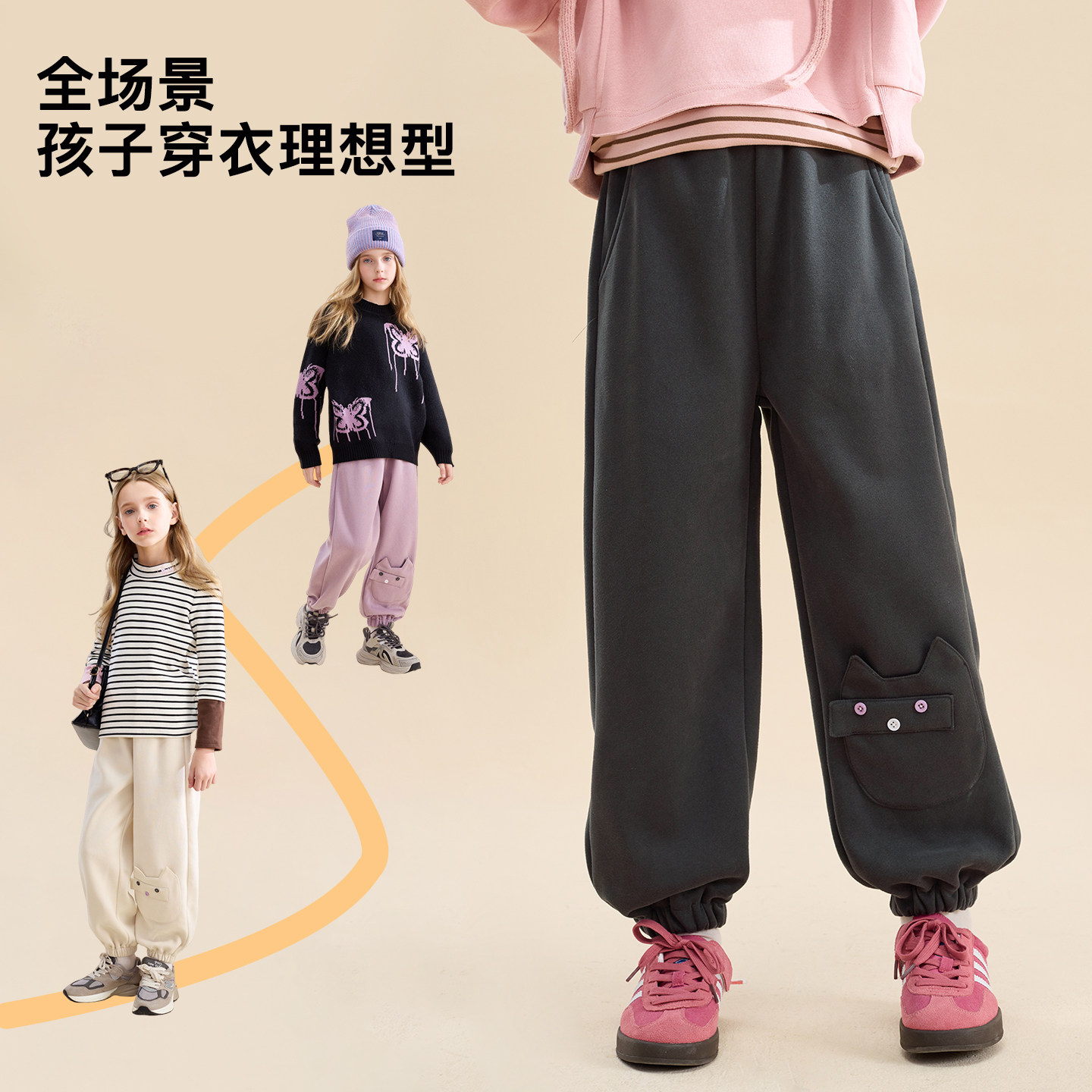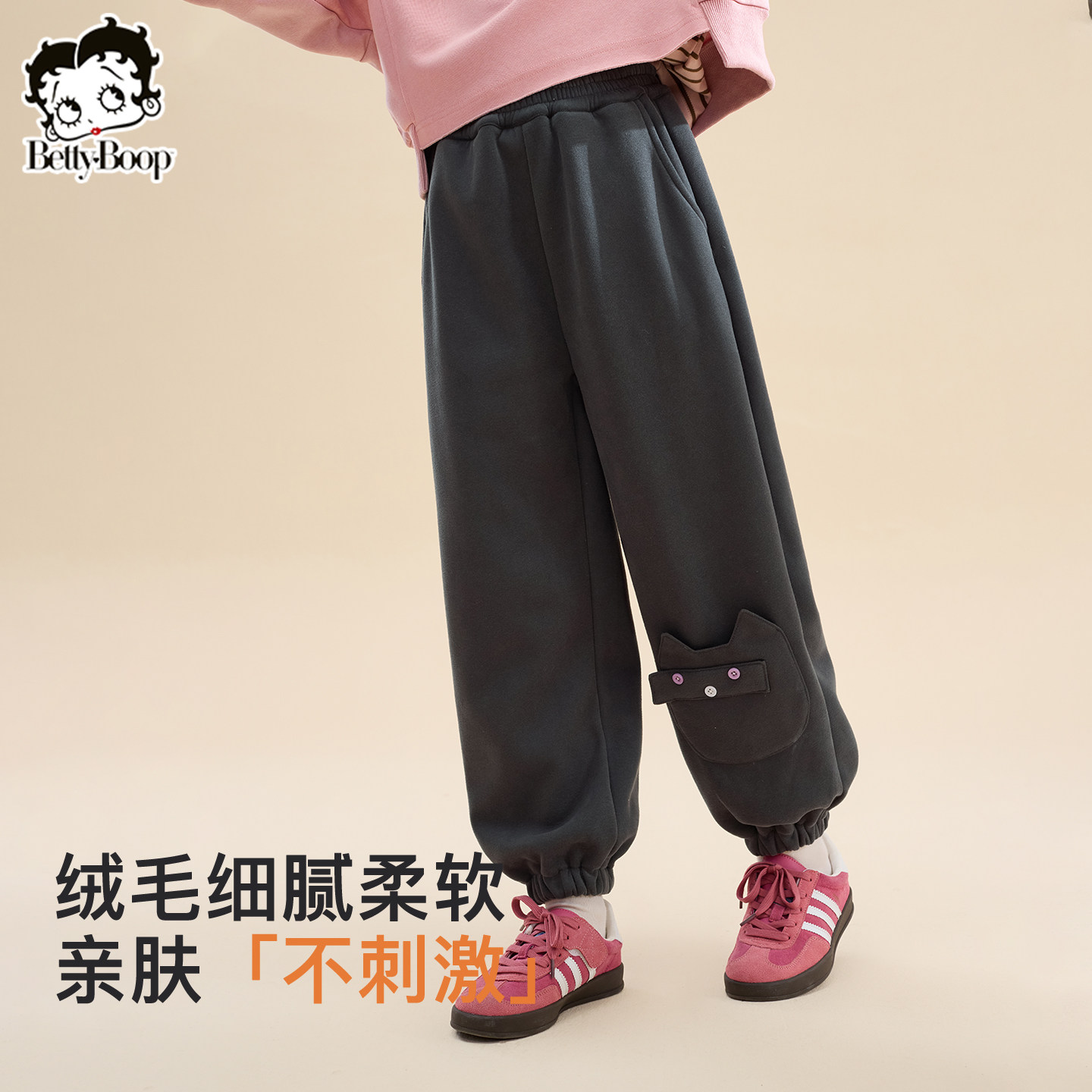 📚 贝蒂童装女童冬季加绒加厚运动裤儿童裤子2026年秋冬女大童宽松裤