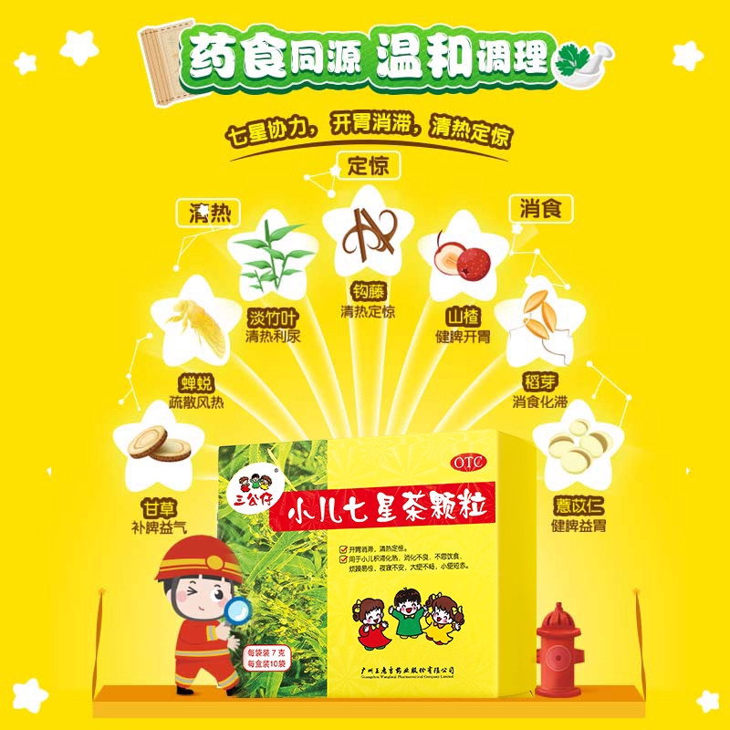 📚 【10袋】三公仔 小儿七星茶颗粒 消化不良大便不畅通便不思饮食