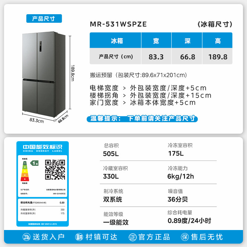 💎打开这款冰箱,你会被它的设计所震撼。独特的十字造型,美观大气,完全符合现代家居风格。双系统循环设计,让食物保鲜效果翻倍,真的是一级风冷无霜,让你的食物始终新鲜如初。