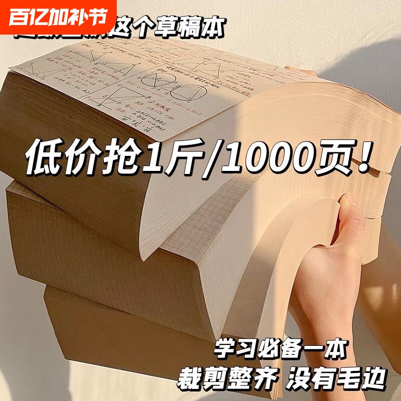 📚 草稿纸批发便宜小学生专用奶砖草稿本空白本方格500张可撕护眼分区超厚空白横线打草纸数学演草纸网格纸张