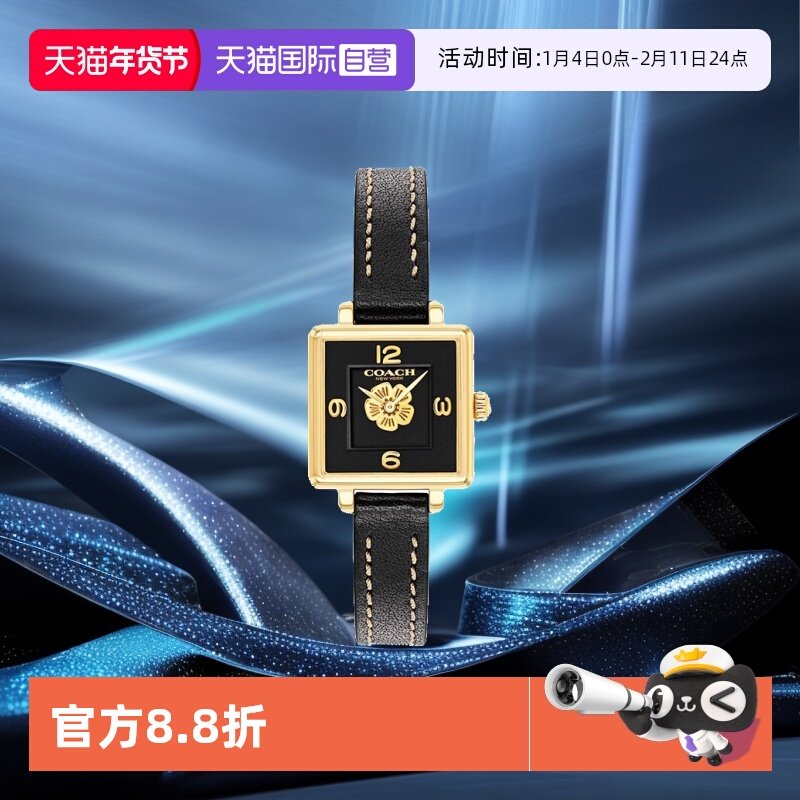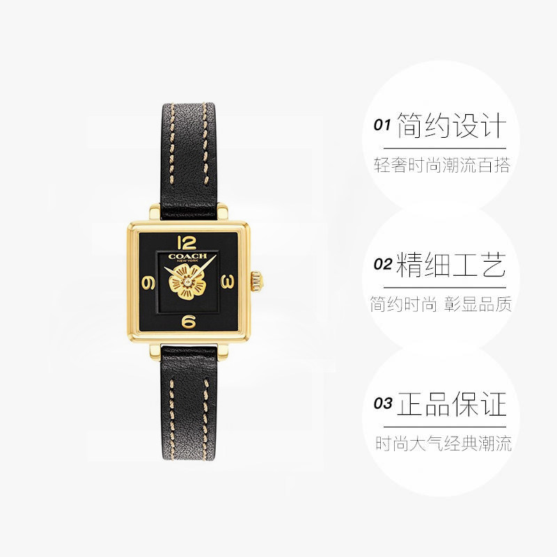 📚 【自营】COACH/蔻驰CASS系列经典茶玫瑰表盘石英女腕表小方糖礼物