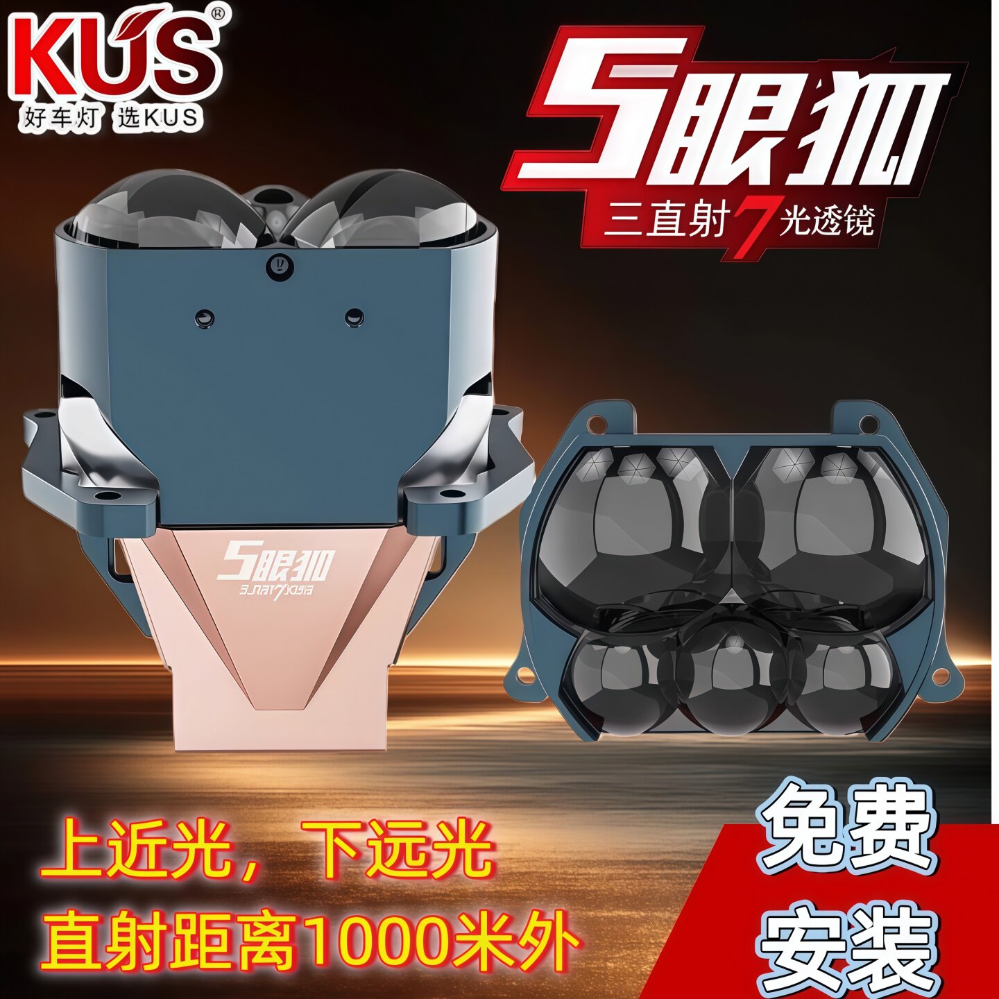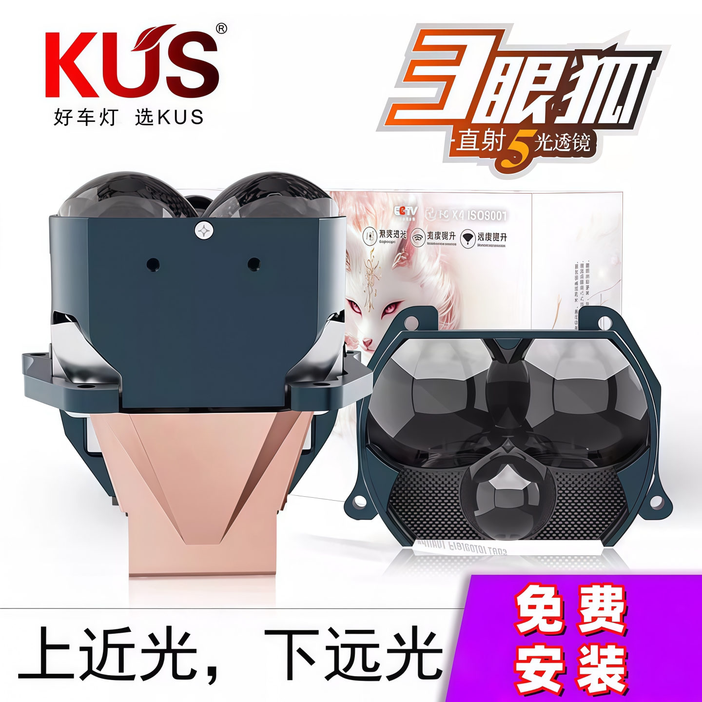📚 KUS 九尾狐双TIR棱镜激光龙珠LED双光透镜大灯升级高亮 免费安装