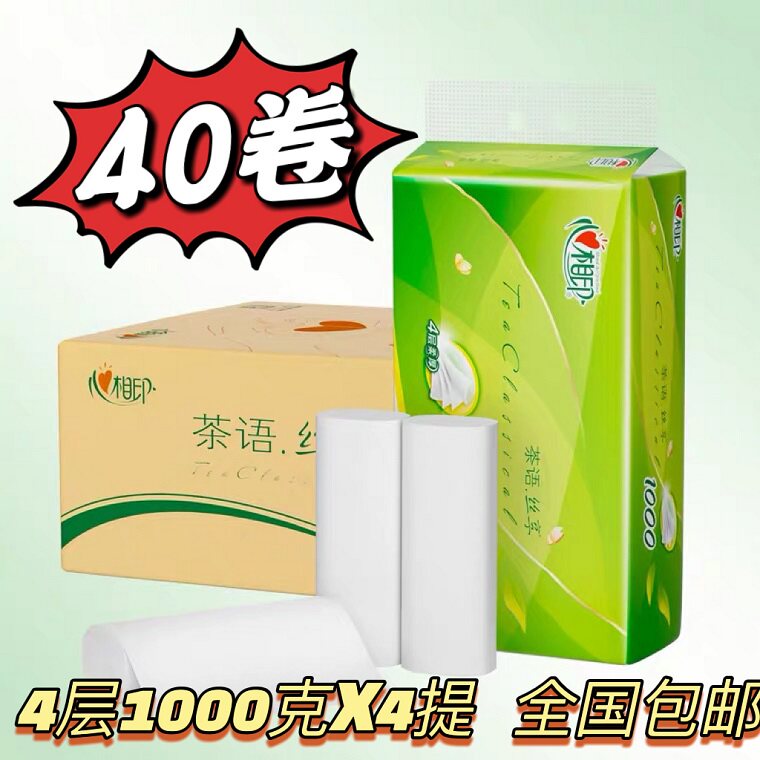 📚 心相印卷纸卫生纸无芯4层1000克共4提母婴厕纸木浆 包邮