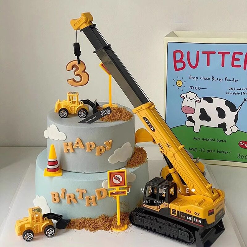 📚 挖掘机吊车蛋糕装饰工程车推土机红绿灯小男孩儿童生日蛋糕摆件