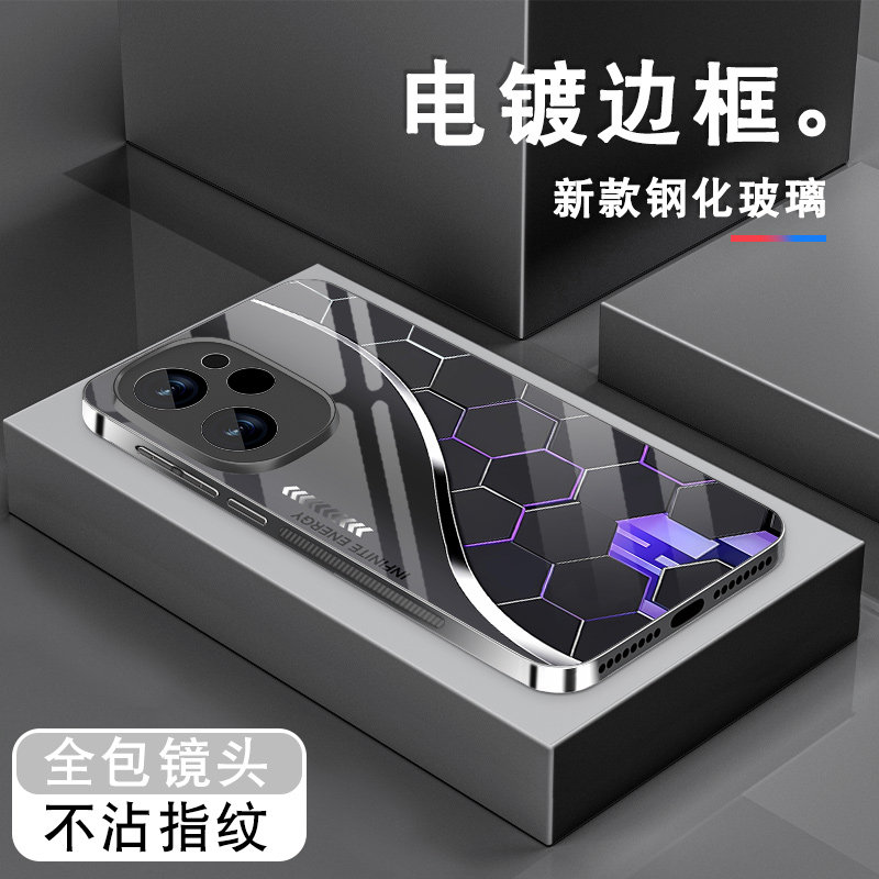 📚 蜂巢粒子适用真我gt7pro手机壳男gtneo6se新款realmeGTneo5电镀玻璃真我GT6个性v25全包oppo防摔q5i套创意潮