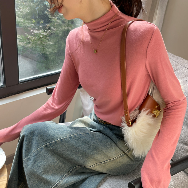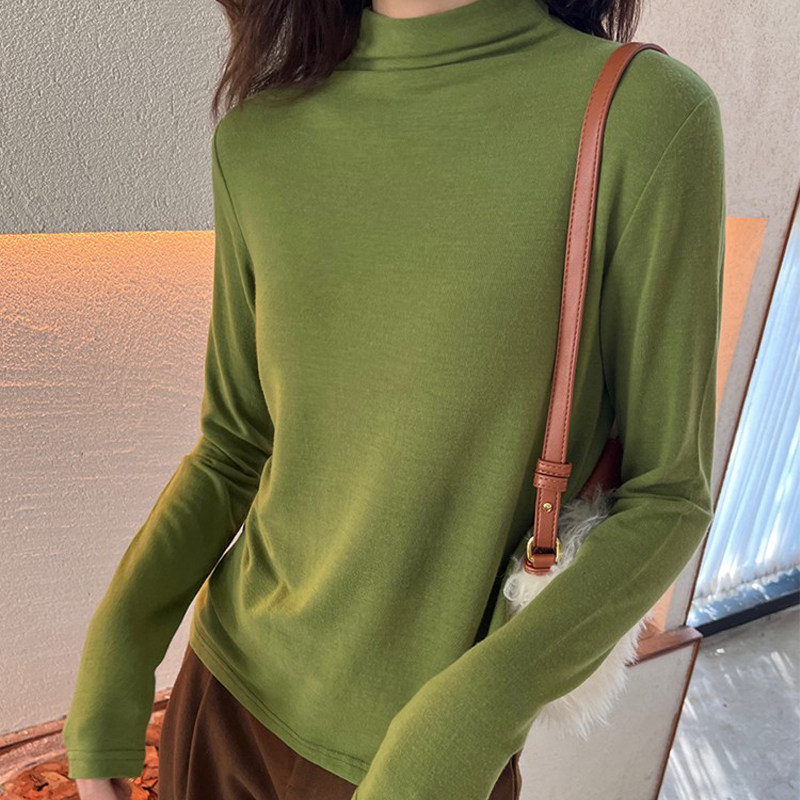 📚 湖蓝色内搭春秋季加绒半高领打底衫女2026新款磨毛高级感中领上衣
