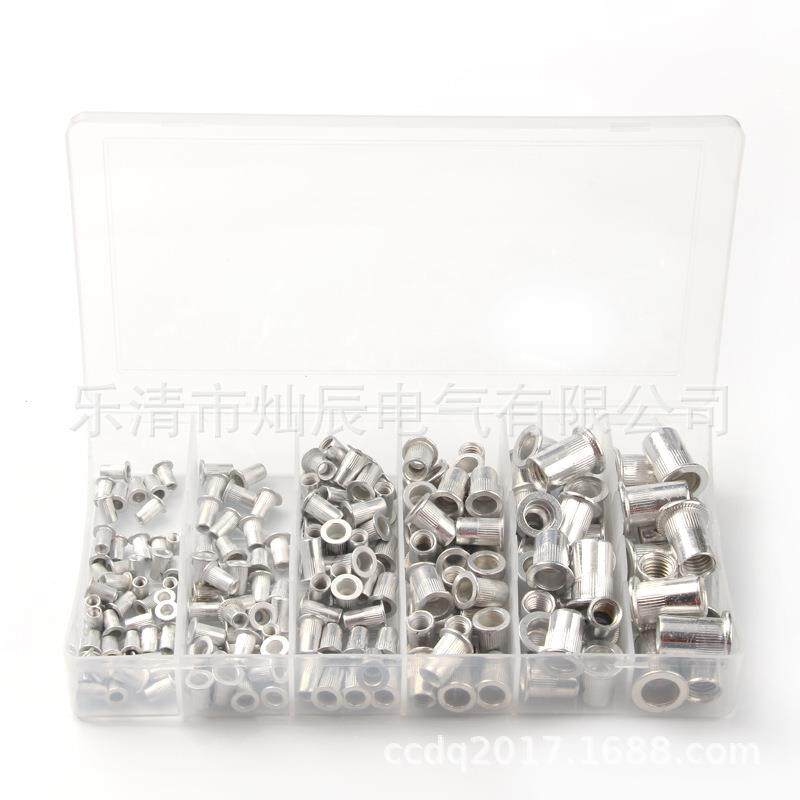 📚 厂家直销 190个平头竖纹铝铆螺母 拉铆螺母盒装平头螺母 拉帽螺母