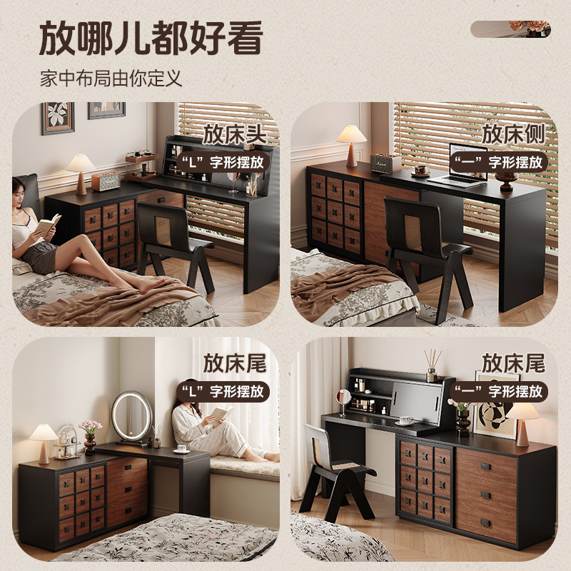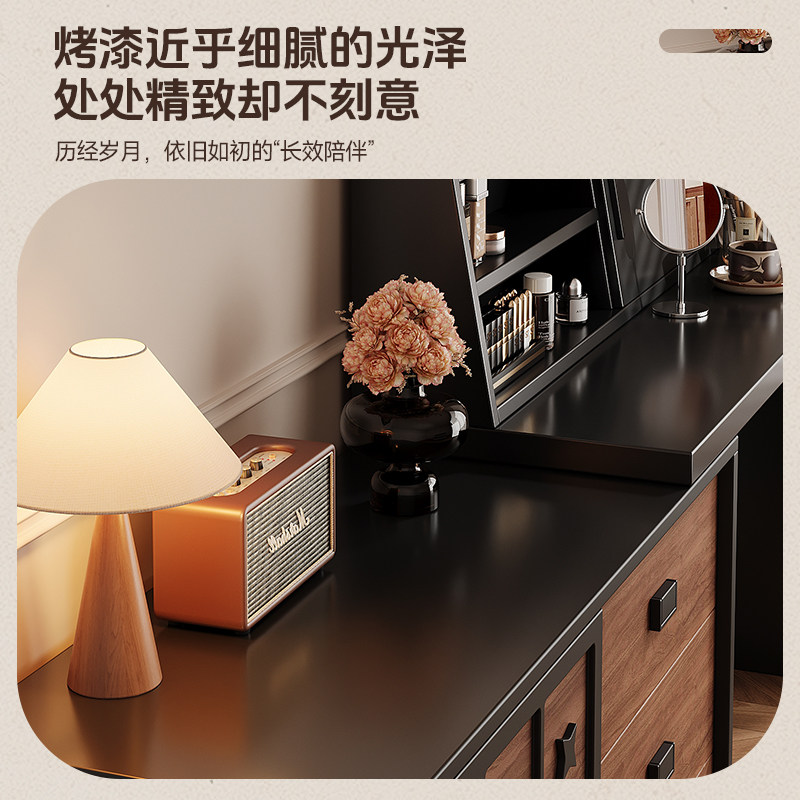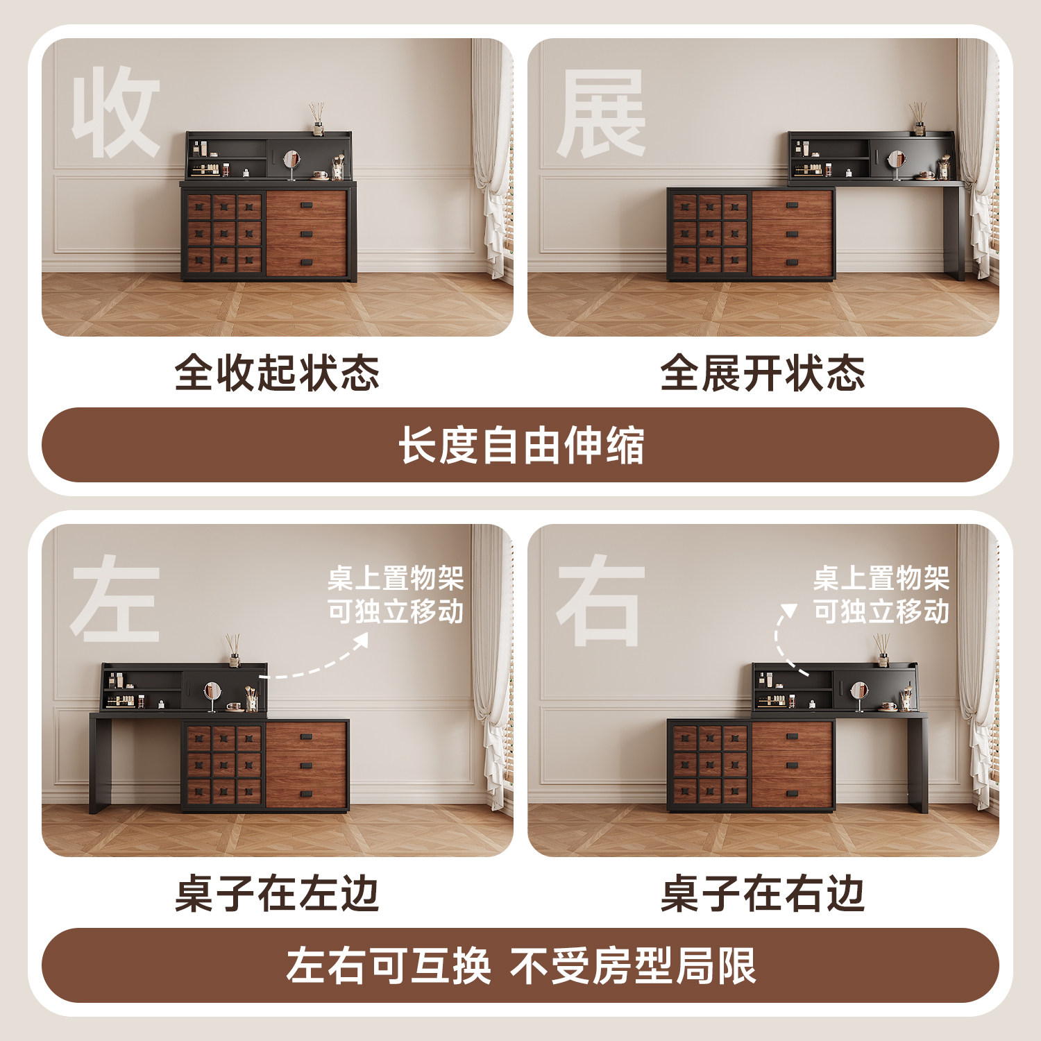 📚 香颂中古风梳妆台斗柜一体2025新款实木芯化妆桌复古风床尾收纳柜