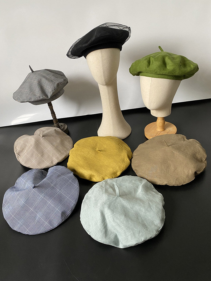 📚 区区欧阳同款黑色贝雷帽子女春夏英伦格子透气显脸小蓓蕾帽画家帽