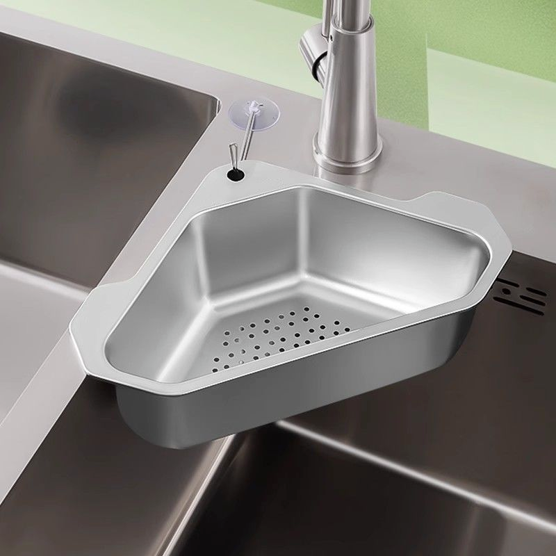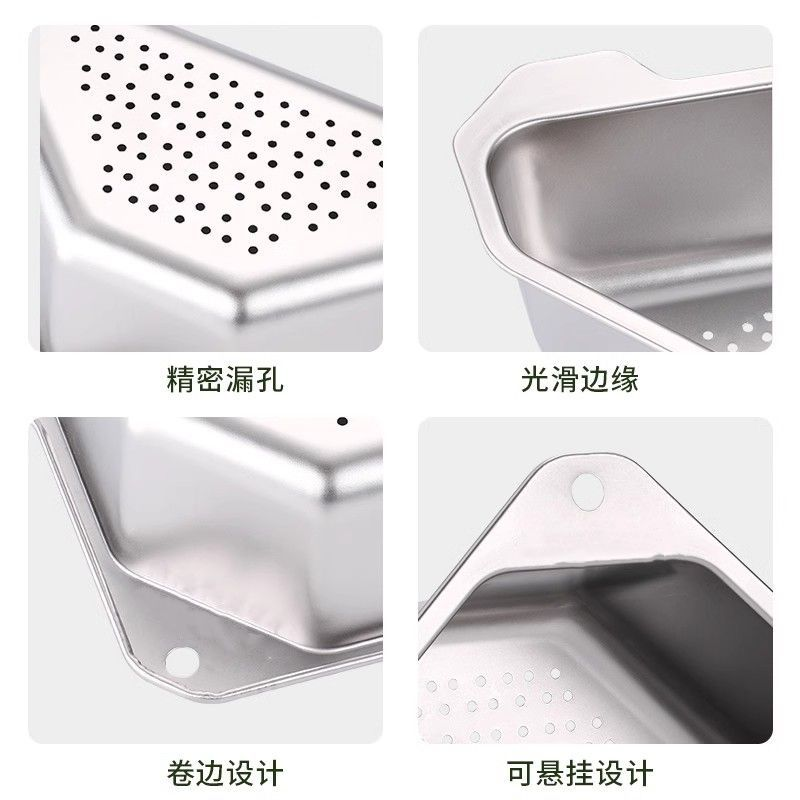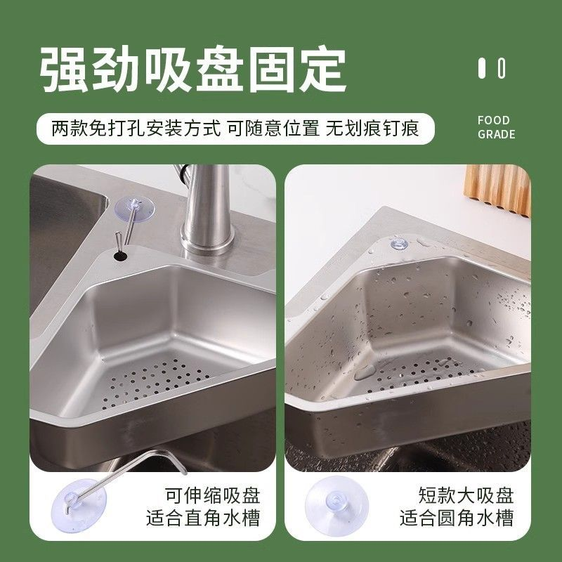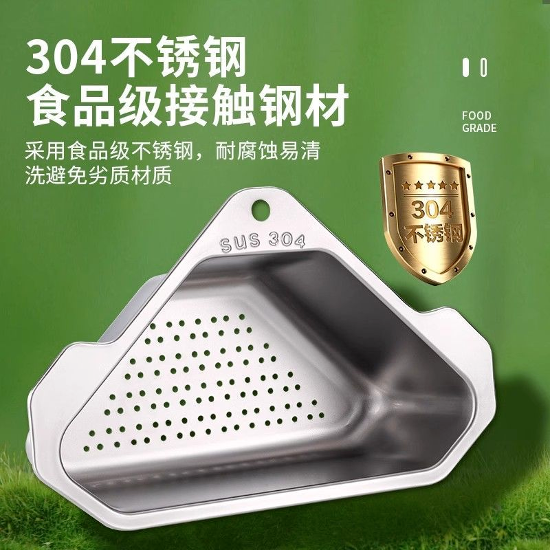 📚 精品厨房水槽三角沥水篮304不锈钢免打孔架剩菜剩饭过滤网筛