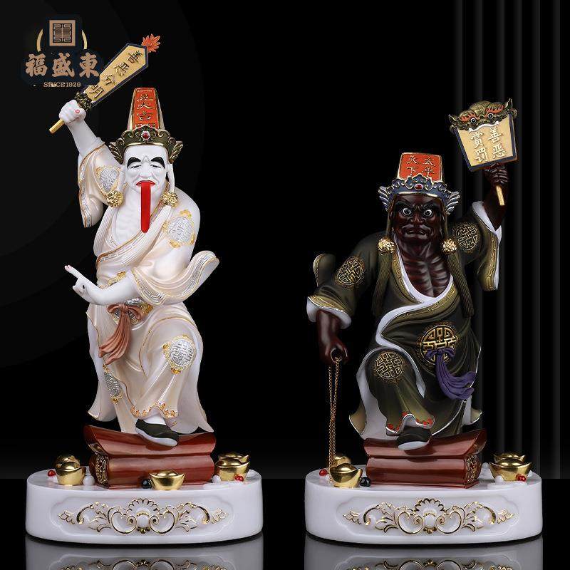 📚 七爷八爷黑白无常神像供奉家用大伯爷站像仿汉白玉白爷黑爷摆件