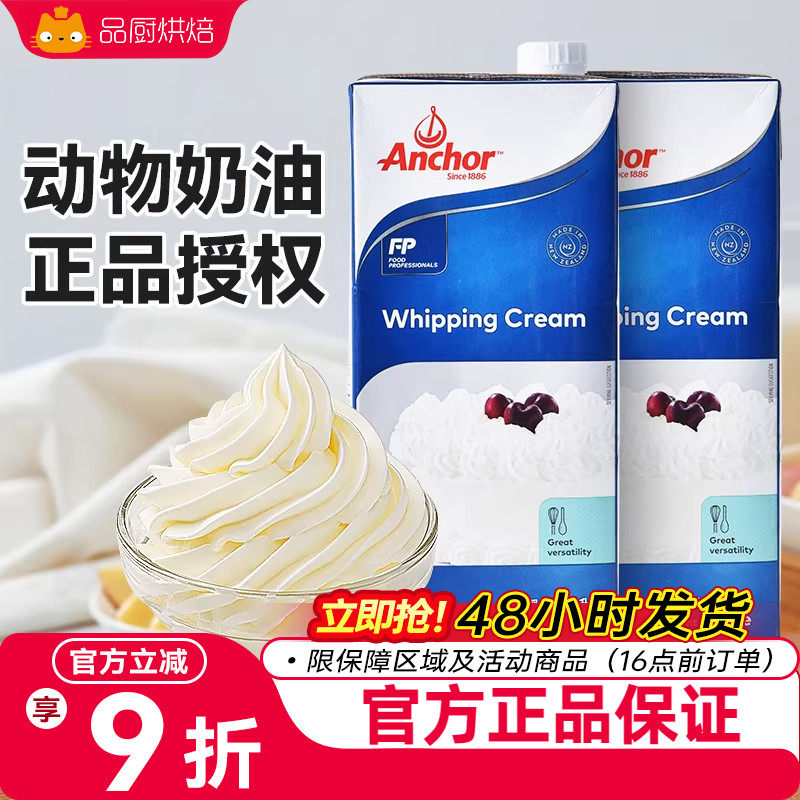 📚 安佳淡奶油1升动物性奶油蛋糕慕斯面包裱花烘焙冰淇淋粉家用专用