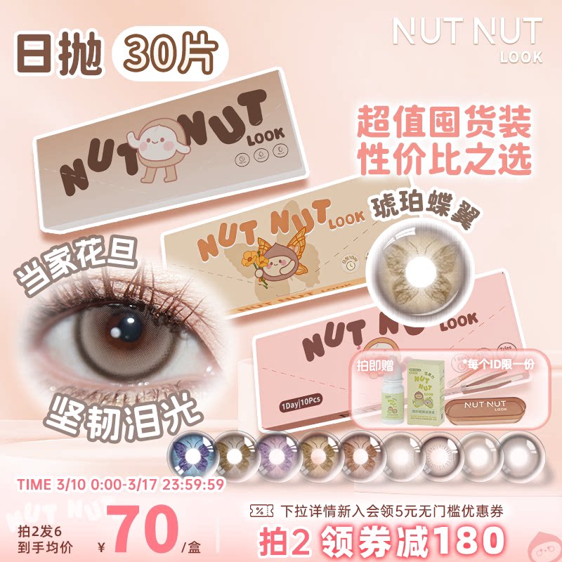 📚 坚果力美瞳日抛30片爆款坚韧泪光琥珀蝶翼隐形眼镜囤货装