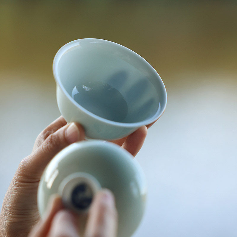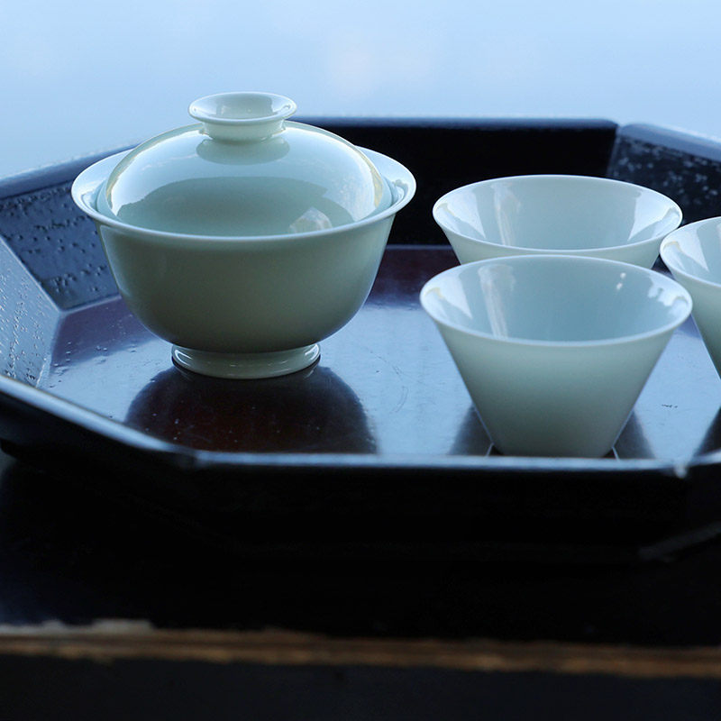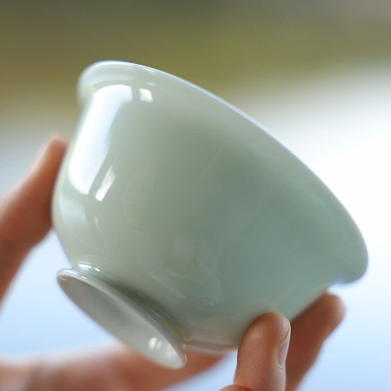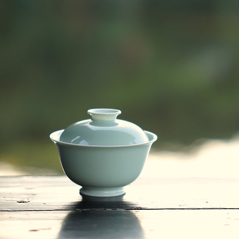 📚 景德镇陶瓷豆青釉盖碗手工中式复古泡茶碗青花手绘小茶碗