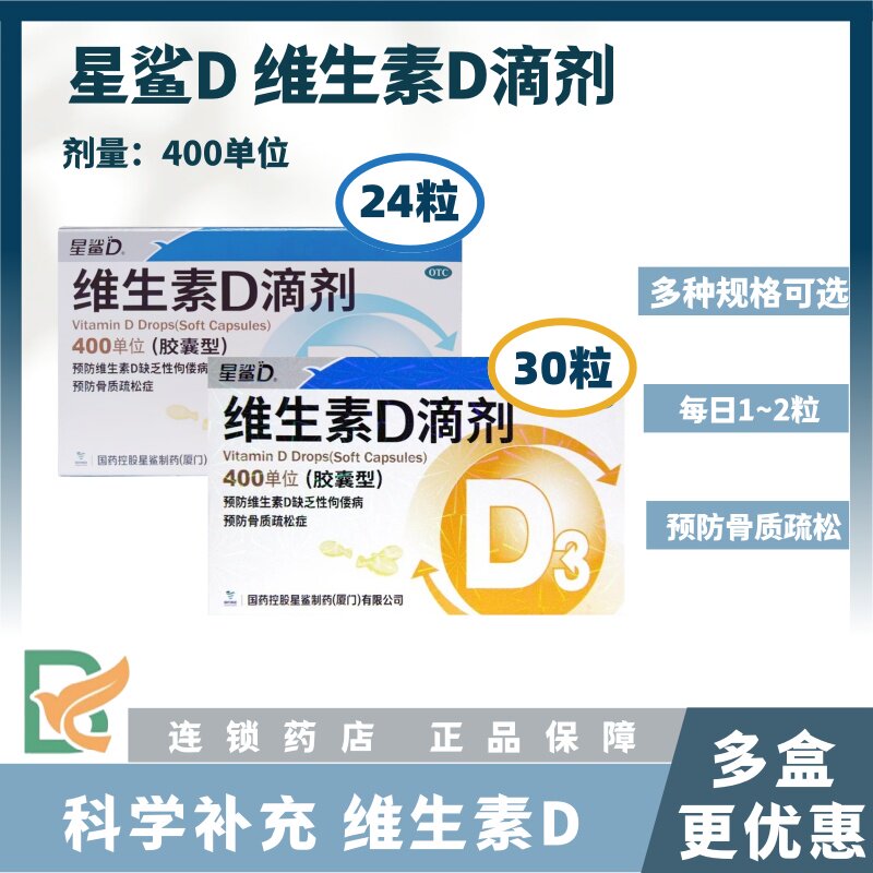 📚 星鲨 维生素D滴剂(胶囊型) 30粒/24粒 预防维生素D缺乏性佝偻病等