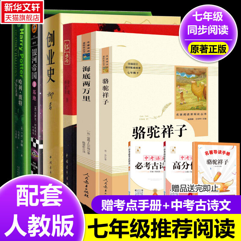 📚 七年级下册必阅读全6册骆驼祥子海底两万里红岩创业史哈利波特与死亡圣器银河帝国基地1学校推荐初中生课外书原著正版人民教育出版