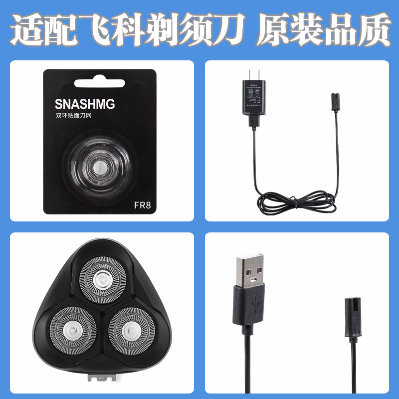 📚 适配飞科FS300刀头/充电器/充电线/刀片等男士剃须刀配件品质全新