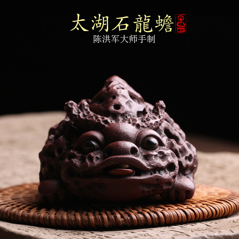 📚 宜兴紫砂茶宠摆件太湖石招财金蟾名家陈洪军纯全手工精品可养茶玩