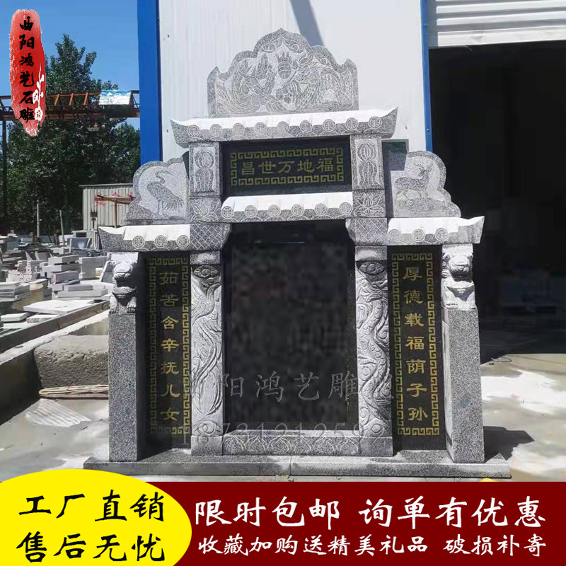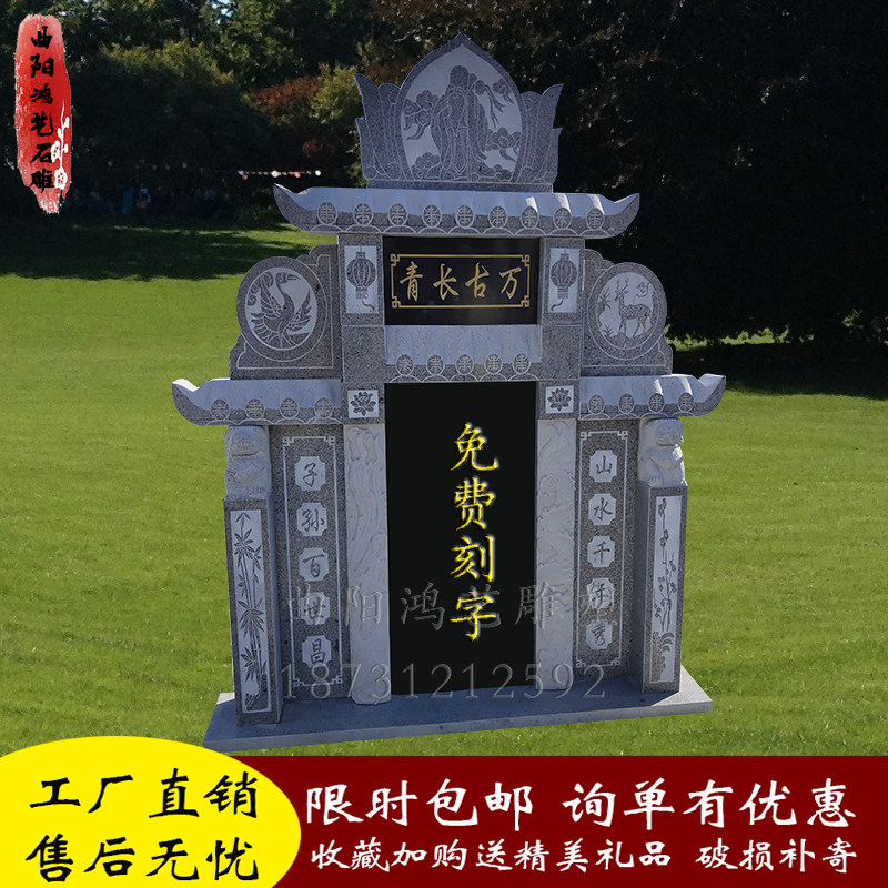 📚 石雕墓碑定制花岗岩农村土葬公墓套碑坟围石传统大型家族豪华石碑