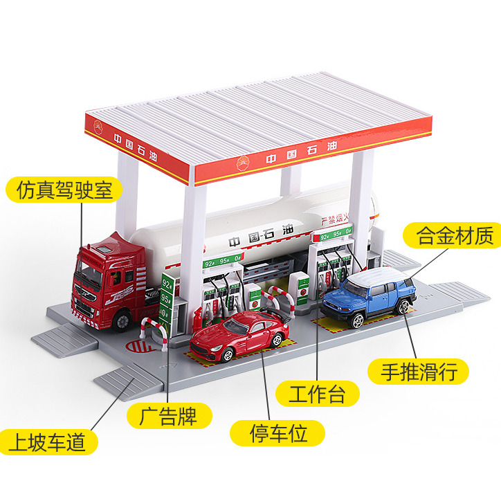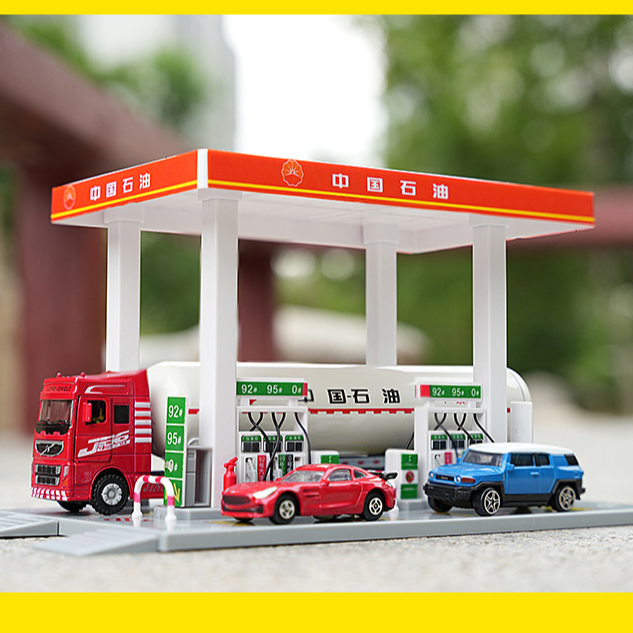 📚 合金加油站场景模型套装1比60中石化中石油模拟场景加油机带小车