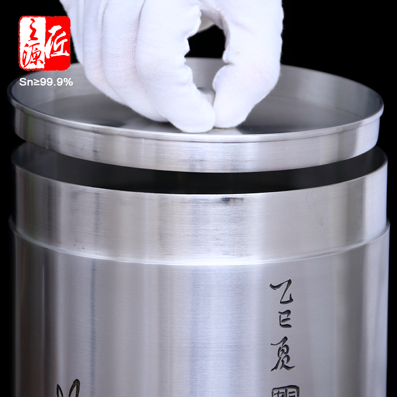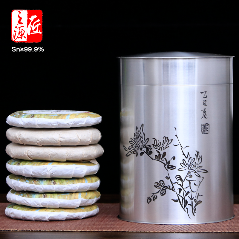 📚 匠之源999纯锡小十饼缸200g整饼茶叶罐李丽老师手刻四君子小十子