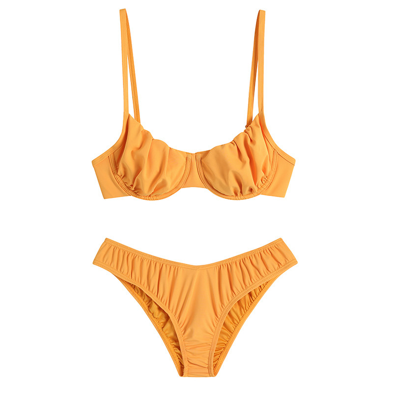 📚 walkingChic黄色钢圈比基尼泳衣女小胸聚拢性感海边冲浪分体泳装