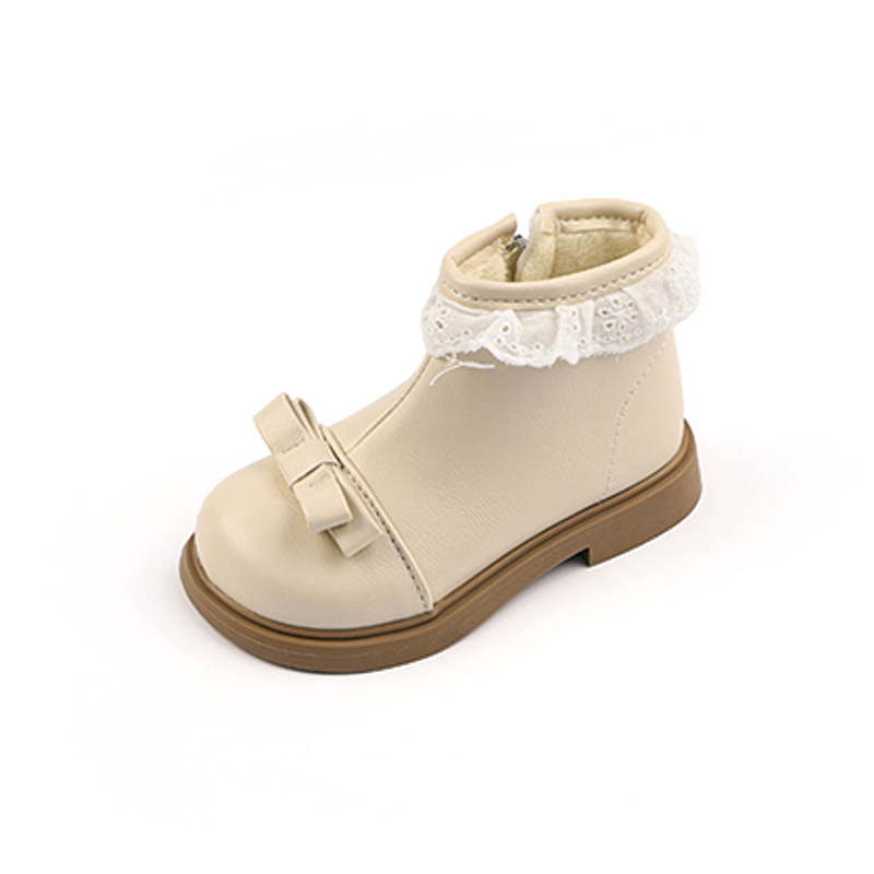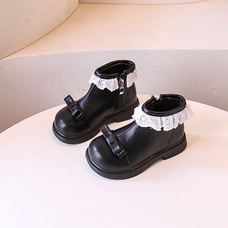 👀首先,外观真的超级洋气!鞋身上有女童特有的加绒蝴蝶结设计,显得特别可爱又俏皮。马丁靴的经典款式配上蕾丝二棉的设计,真的让人一眼就爱上了。而且这款靴子真的是冬季新款,保暖又时尚,非常适合寒冷的季节。