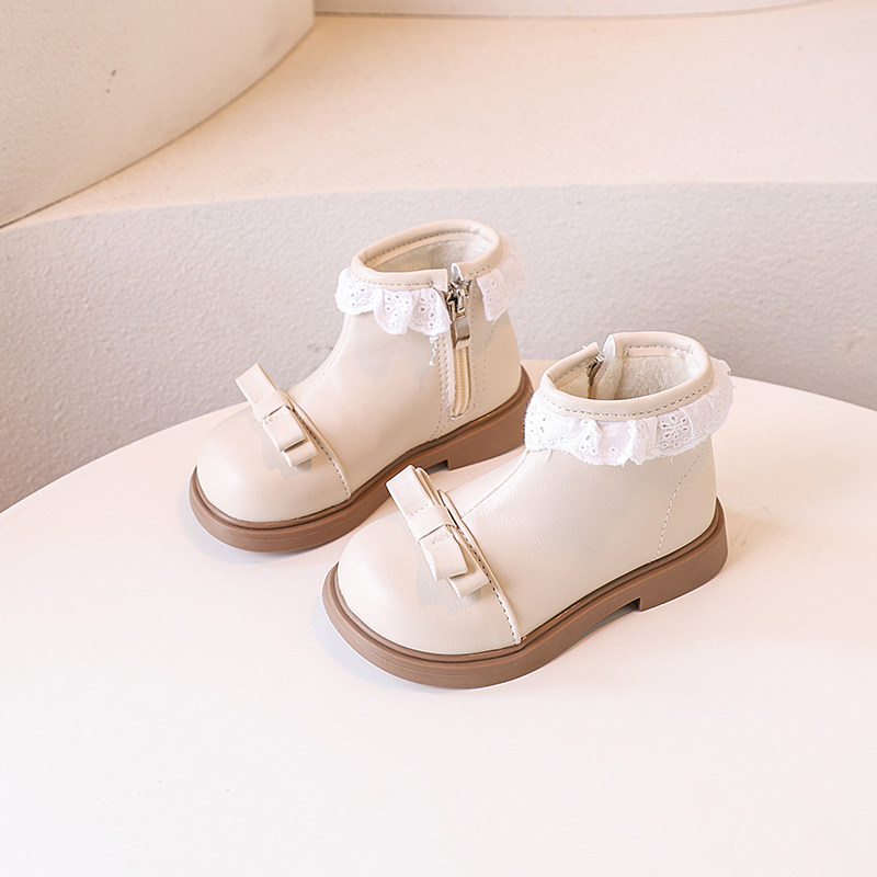 #女童靴子 #冬季新款 #加绒蝴蝶结马丁靴 #蕾丝短靴 #公主风 #券后价42.9