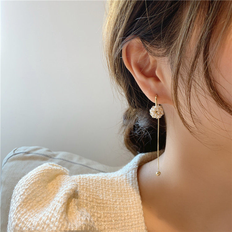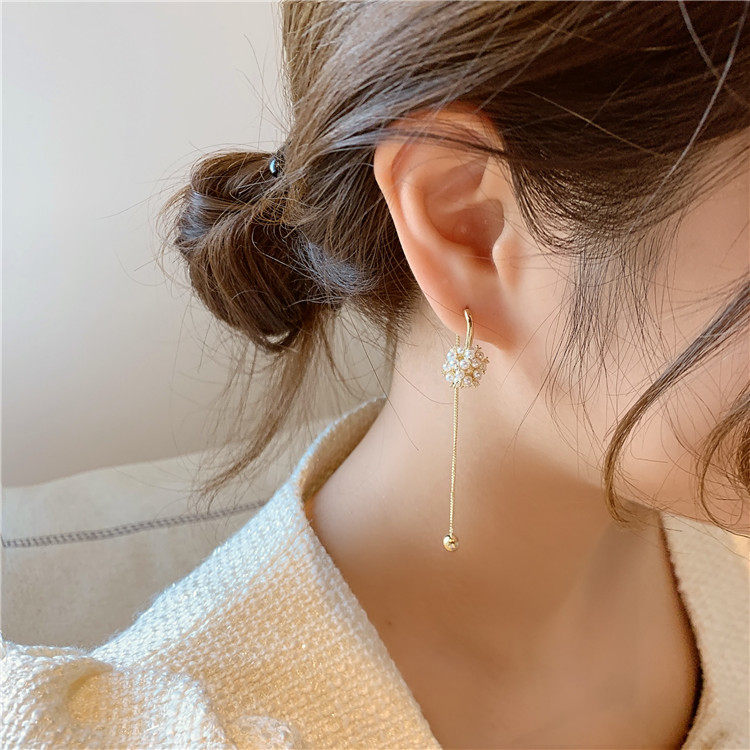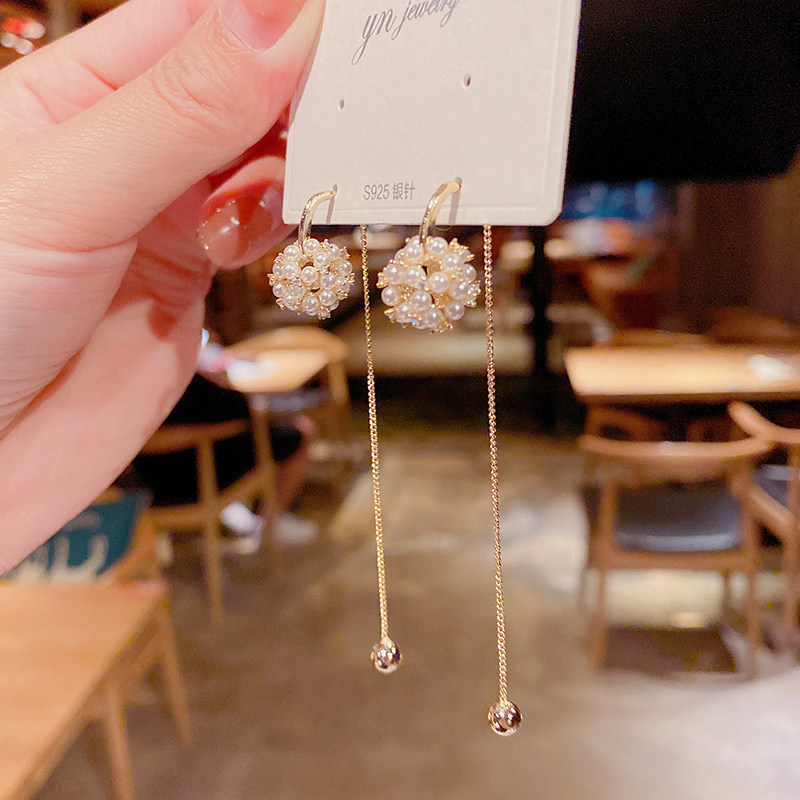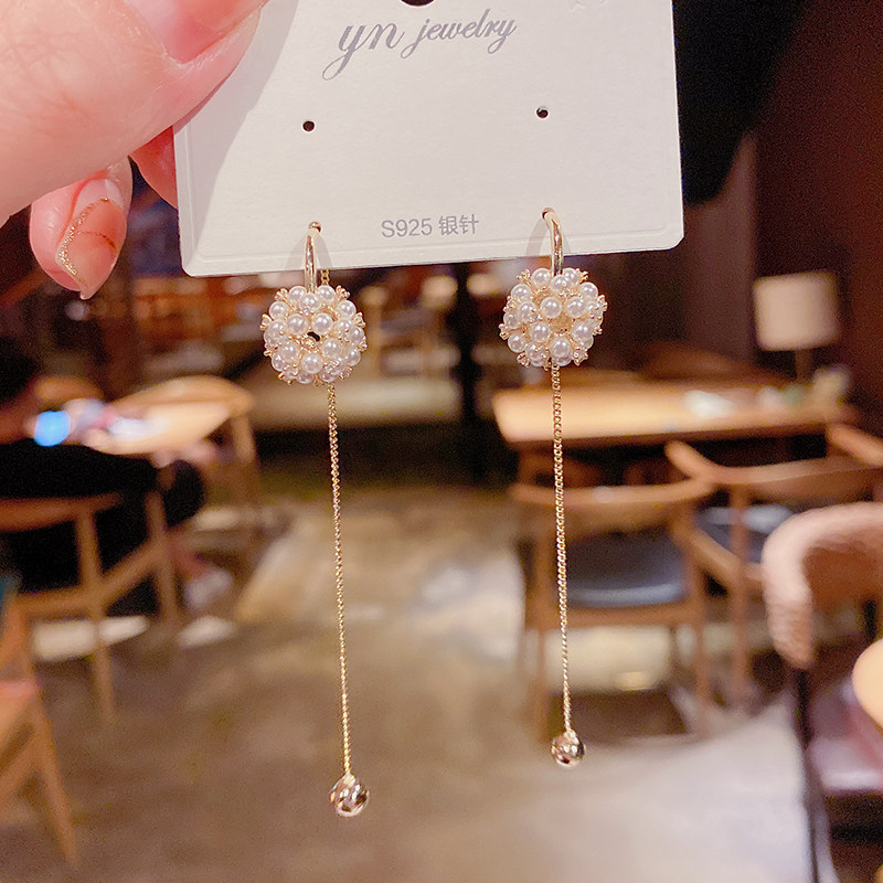 📚 s925银针镂空珍珠花球耳钉两戴长款流苏耳环网红优雅百搭耳坠耳饰