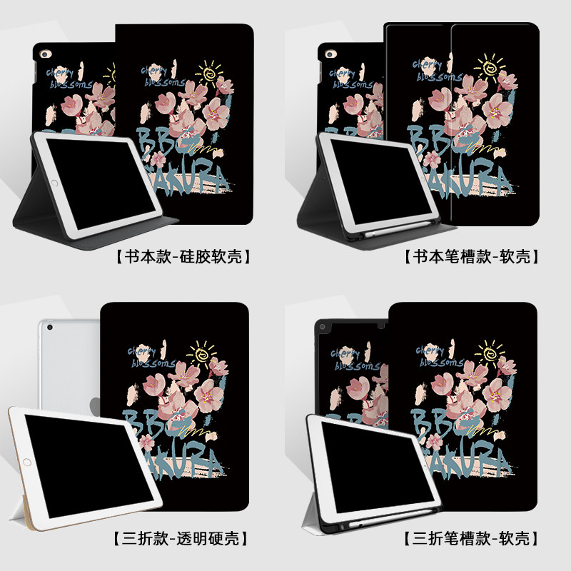 📚 ipad9保护壳带笔槽air5黑色pro11寸油画花2021第九代mini6平板2022版3全包8适用苹果10.2可充电书本式4轻薄套
