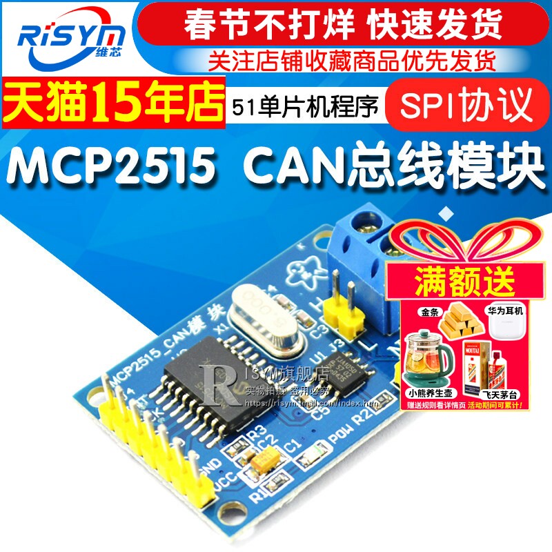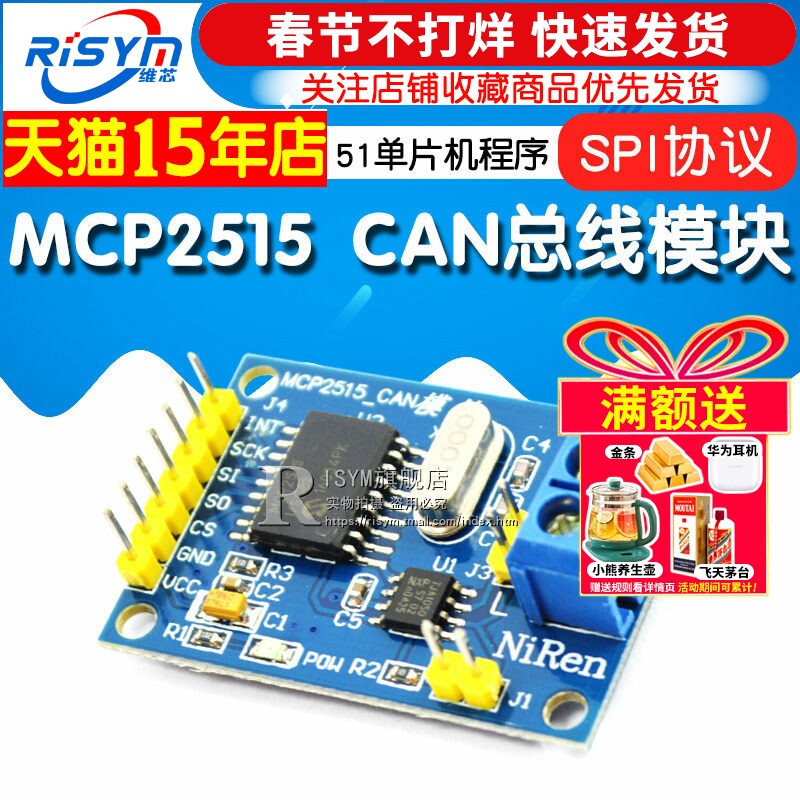 📚 Risym MCP2515 CAN总线模块 TJA1050接收器 SPI协议51单片机程序